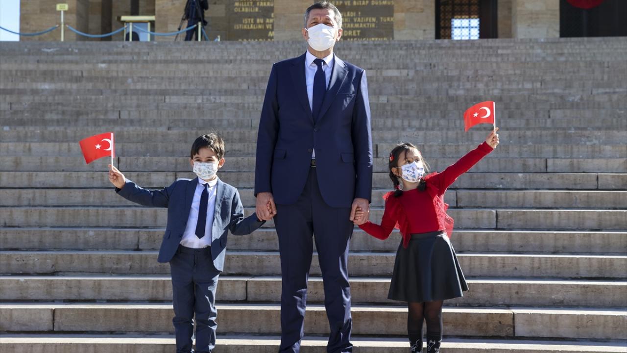 Selçuk, Anıtkabir ziyaret boyunca ellerinde Türk bayrağı taşıyan Keçiören Kalaba Anaokulu öğrencisi Sarp Kerimoğlu ve Arya Çetinkaya ile yan yana yürüdü.