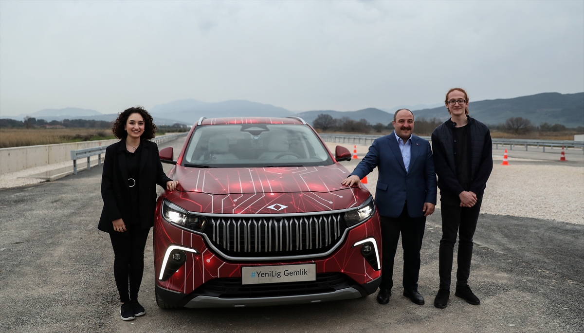 Togg`un arka koltuğunda Bakan Varank`ın sosyal medya üzerinden yaptığı çağrı sonucu davet edilen iki öğrenci yer aldı. Uludağ Üniversitesi Bilgisayar Mühendisliği öğrencileri Sena Bahadıroğlu ve Ferit Yiğit Balaban, Varank`ın test sürüşüne eşlik etti.
