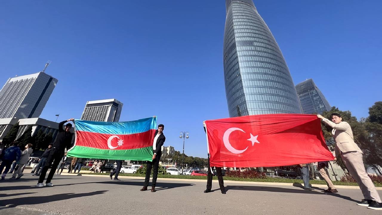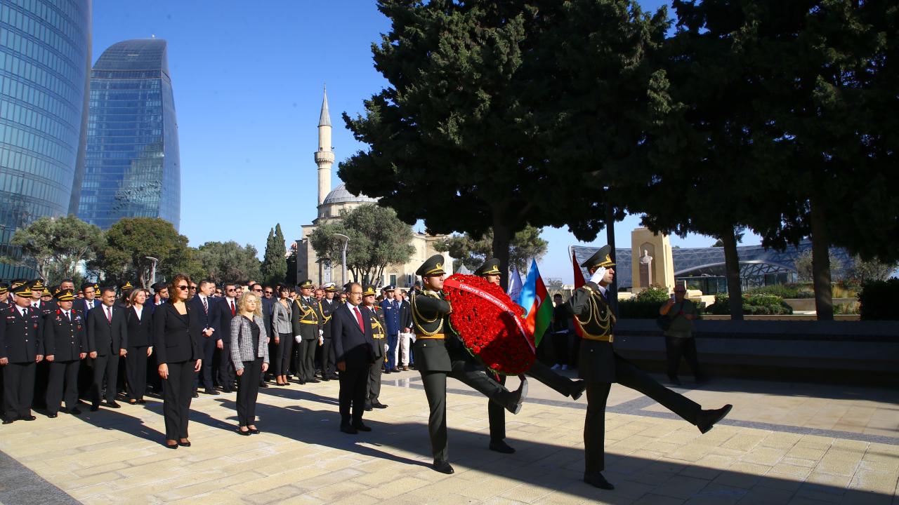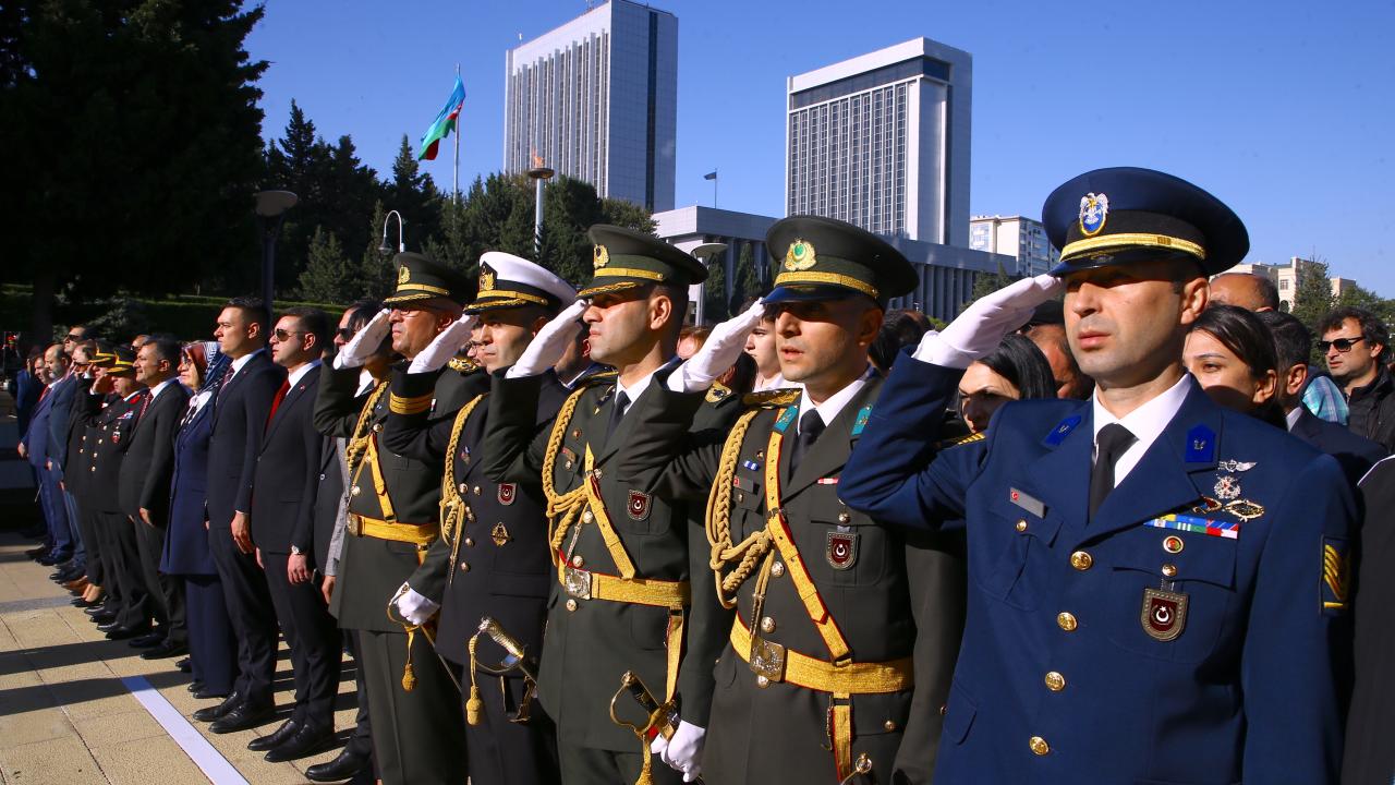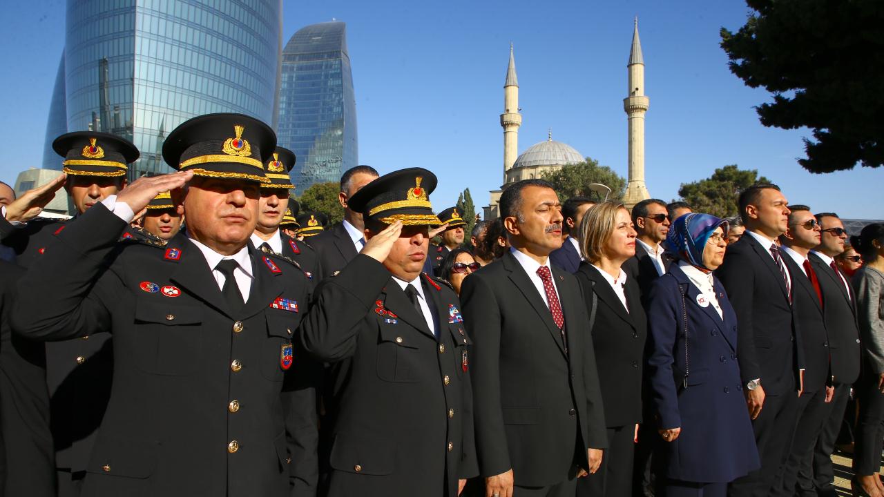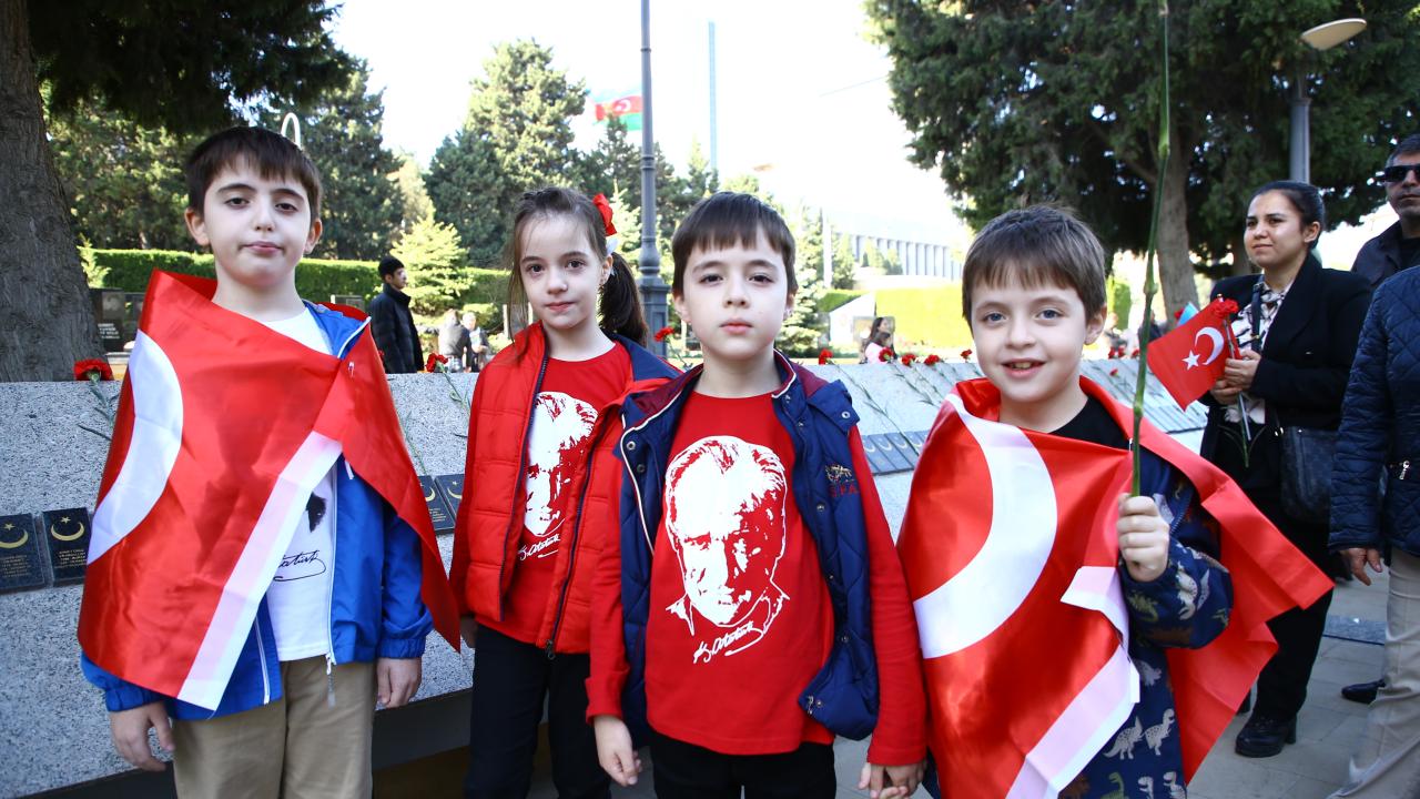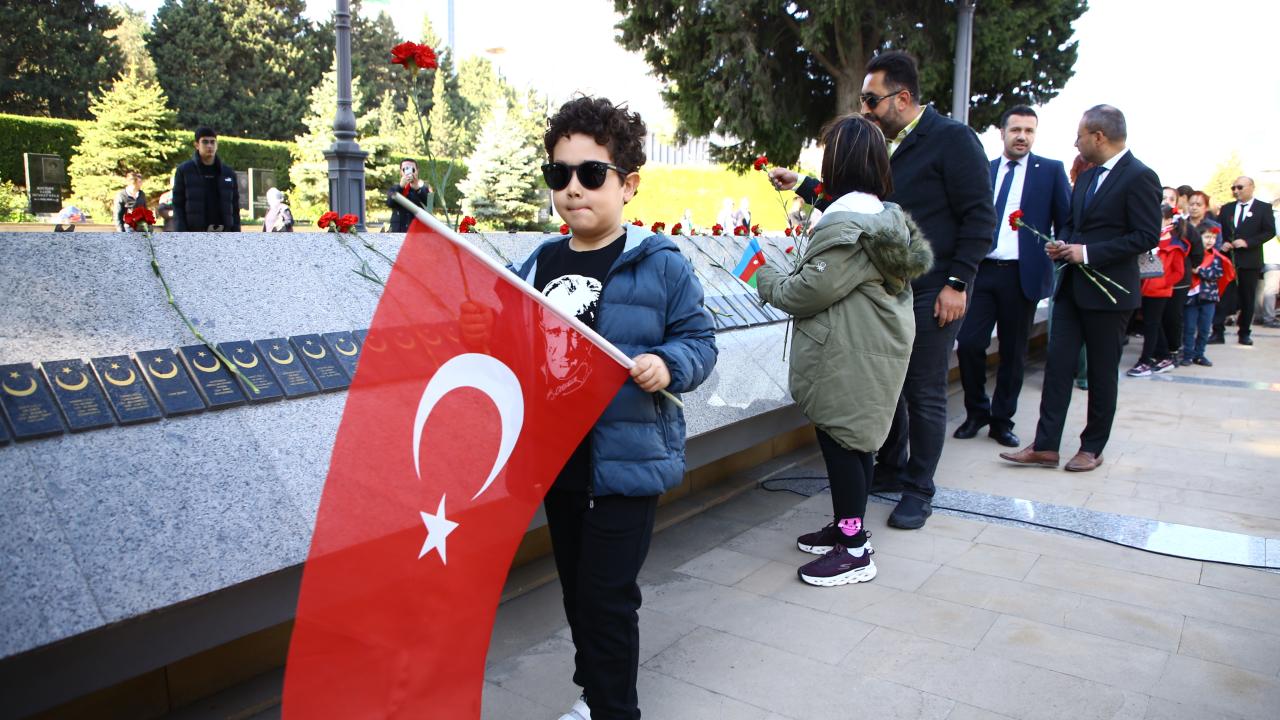 Azerbaycan'ın başkenti Bakü'deki Türk Şehitliği'nde Türkiye Cumhuriyeti'nin 100. yılı dolayısıyla tören düzenlendi. Törene, öğrenciler de katıldı.