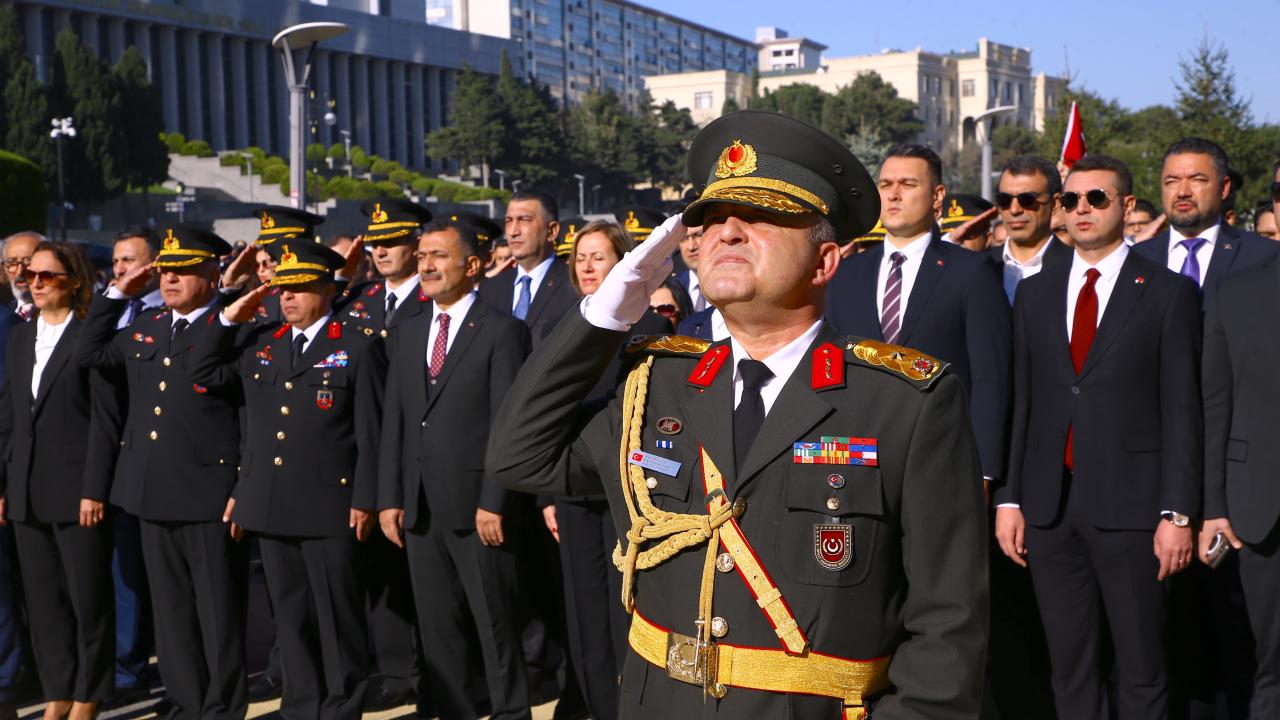 Azerbaycan Savunma Bakanlığına bağlı askeri bando, İstiklal Marşı ve Azerbaycan Milli Marşı`nı seslendirdi.