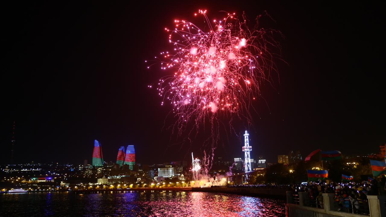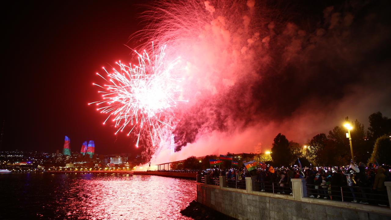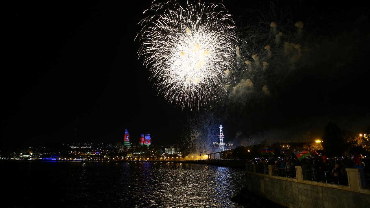 Bakü`deki gösteriyi binlerce kişi sokaklarda izledi. Bakülüler, Azerbaycan ve Türk bayraklarıyla çıktıkları sokaklarda bir taraftan havai fişek gösterisini coşkuyla izlerken, bir taraftan da sevinç gösterisinde bulundu.