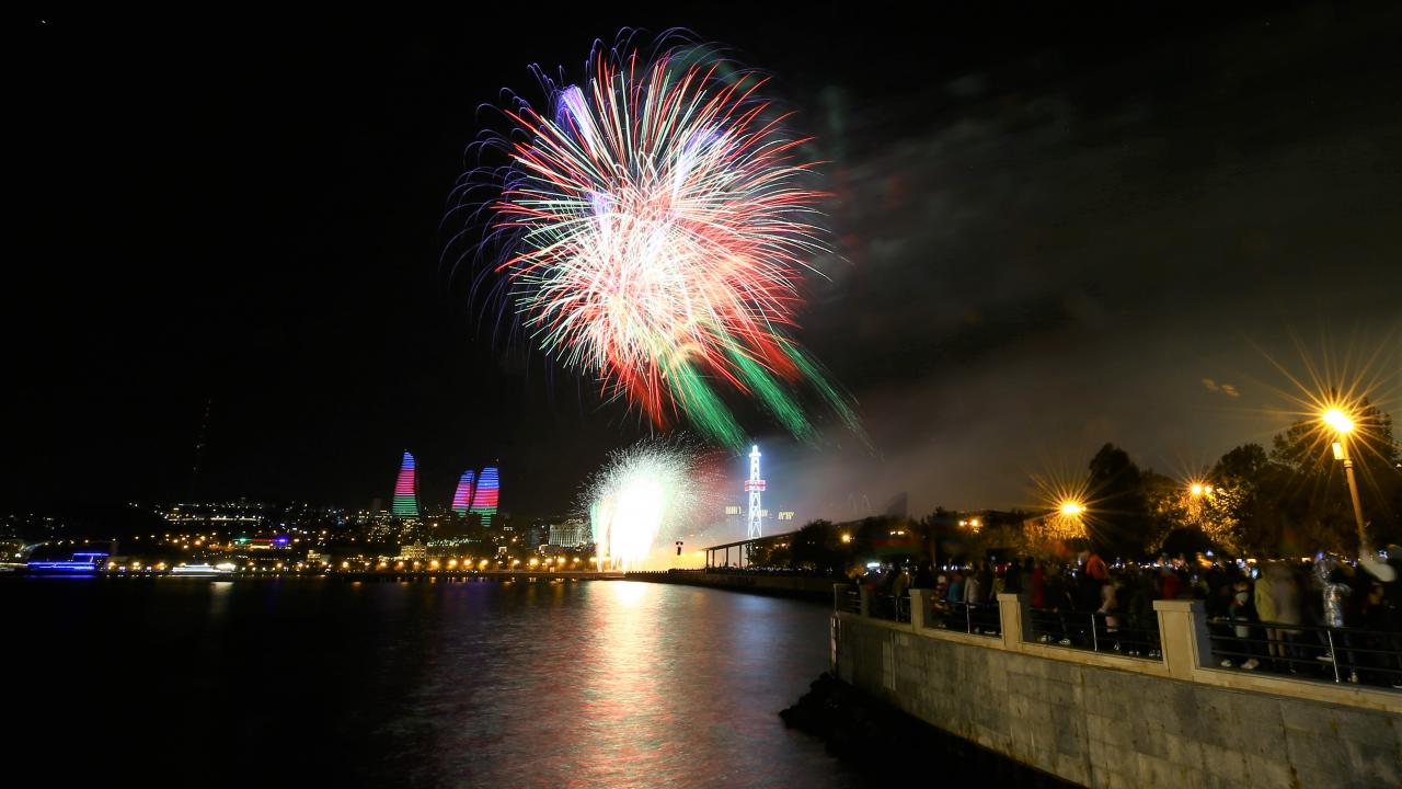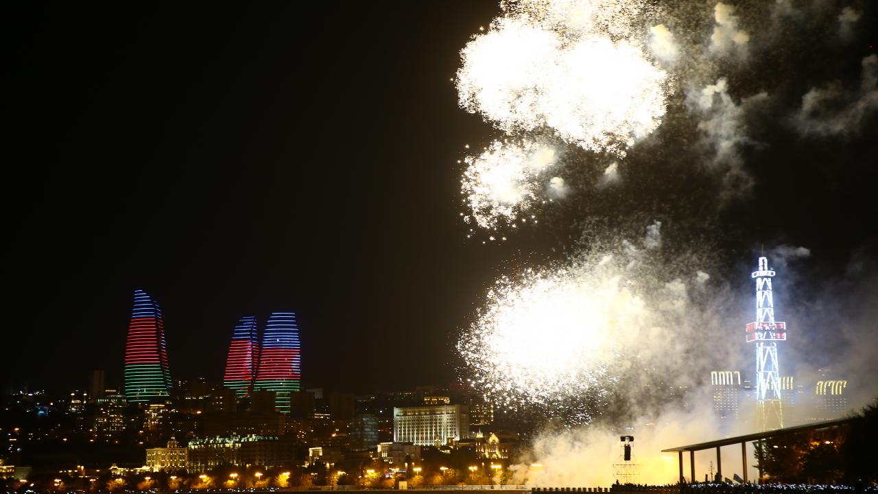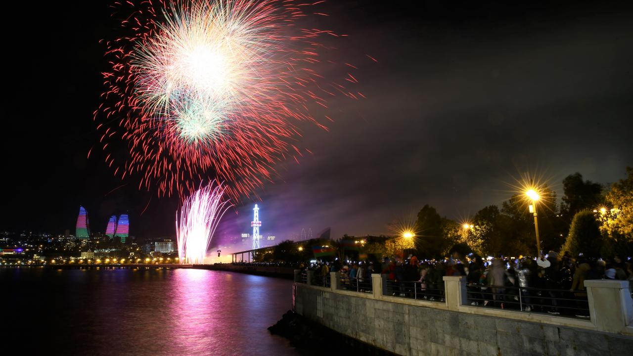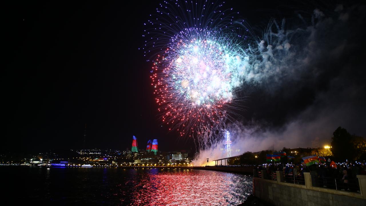 Bakü`deki gösteriyi binlerce kişi sokaklarda izledi. Bakülüler, Azerbaycan ve Türk bayraklarıyla çıktıkları sokaklarda bir taraftan havai fişek gösterisini coşkuyla izlerken, bir taraftan da sevinç gösterisinde bulundu.
