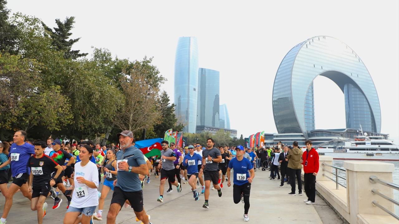 Azerbaycan Gençlik ve Spor Bakanlığının organizasyonunda Hazar Denizi kıyısındaki Ulusal Park`ta düzenlenen koşuya, profesyonel sporcuların yanı sıra çok sayıda vatandaş katıldı.