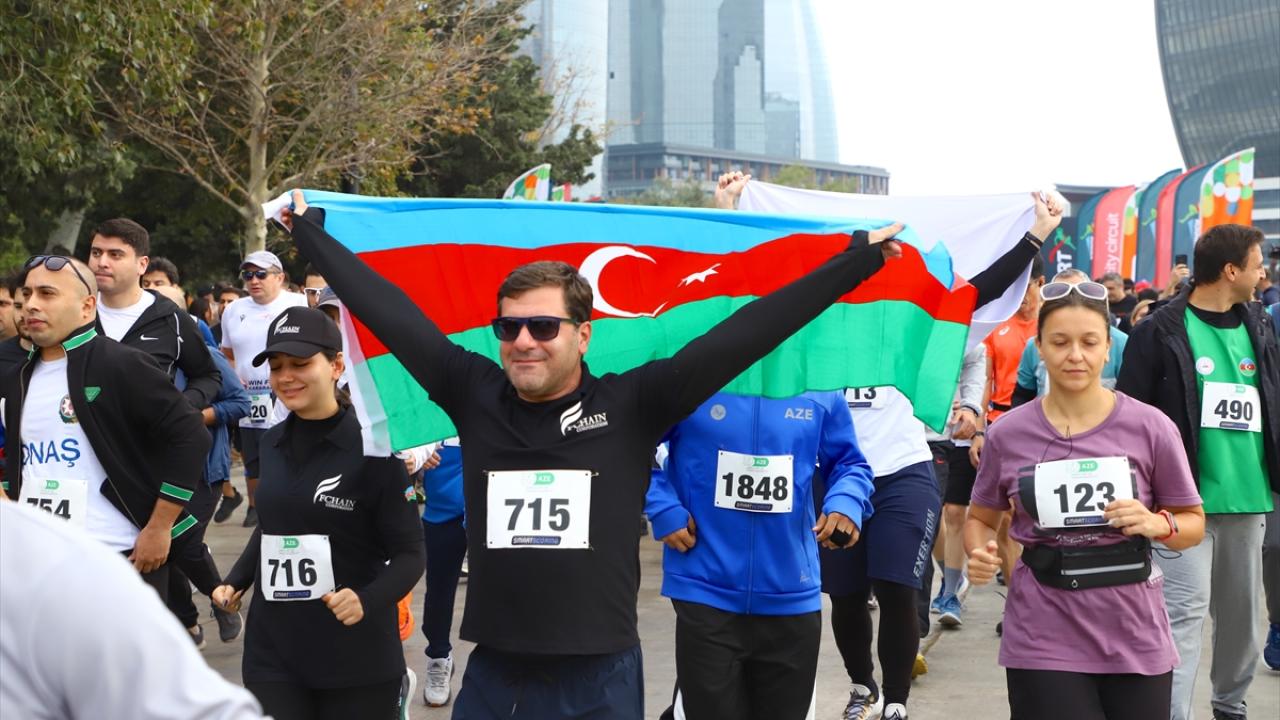 Kayıt ücretlerinin şehit aileleri ve gazilerin sorunlarını çözmek için Azerbaycan devleti tarafından kurulan "Yaşat Fonu"na aktarılacağı koşuya katılanlar, bitiş çizgisine ulaşmak için 10 kilometre koştu.
