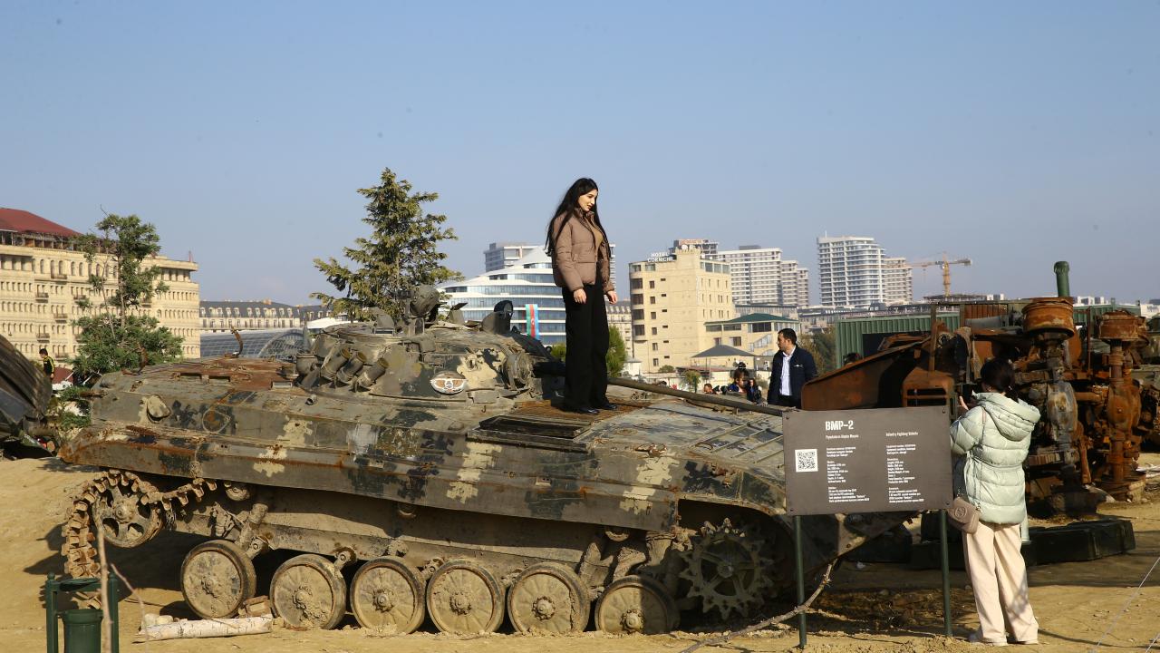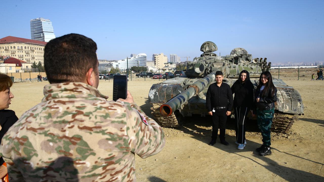 Ermenistan ordusundan ele geçirilen silah ve zırhlı araçların bir kısmının sergilendiği Bakü'deki `Ganimetler Müzesi` de ziyaretçi akınına uğradı.
