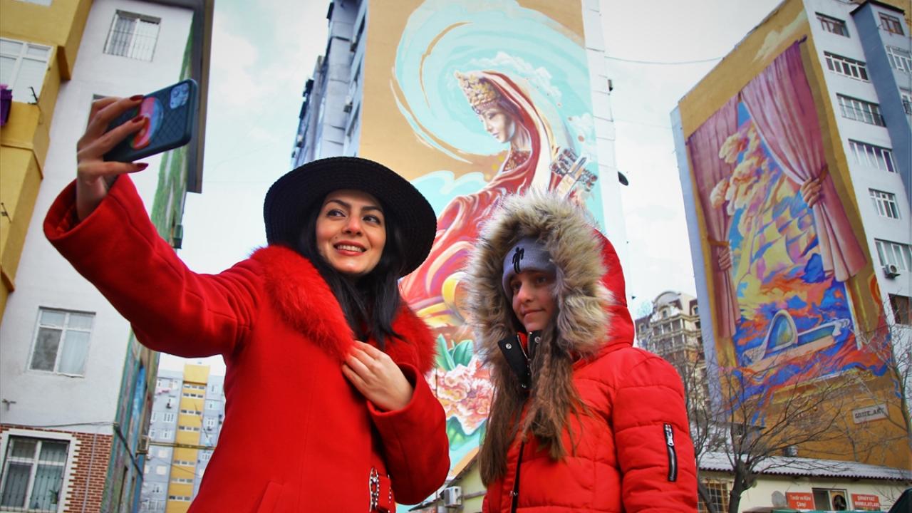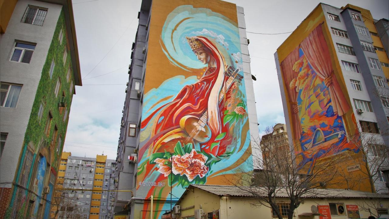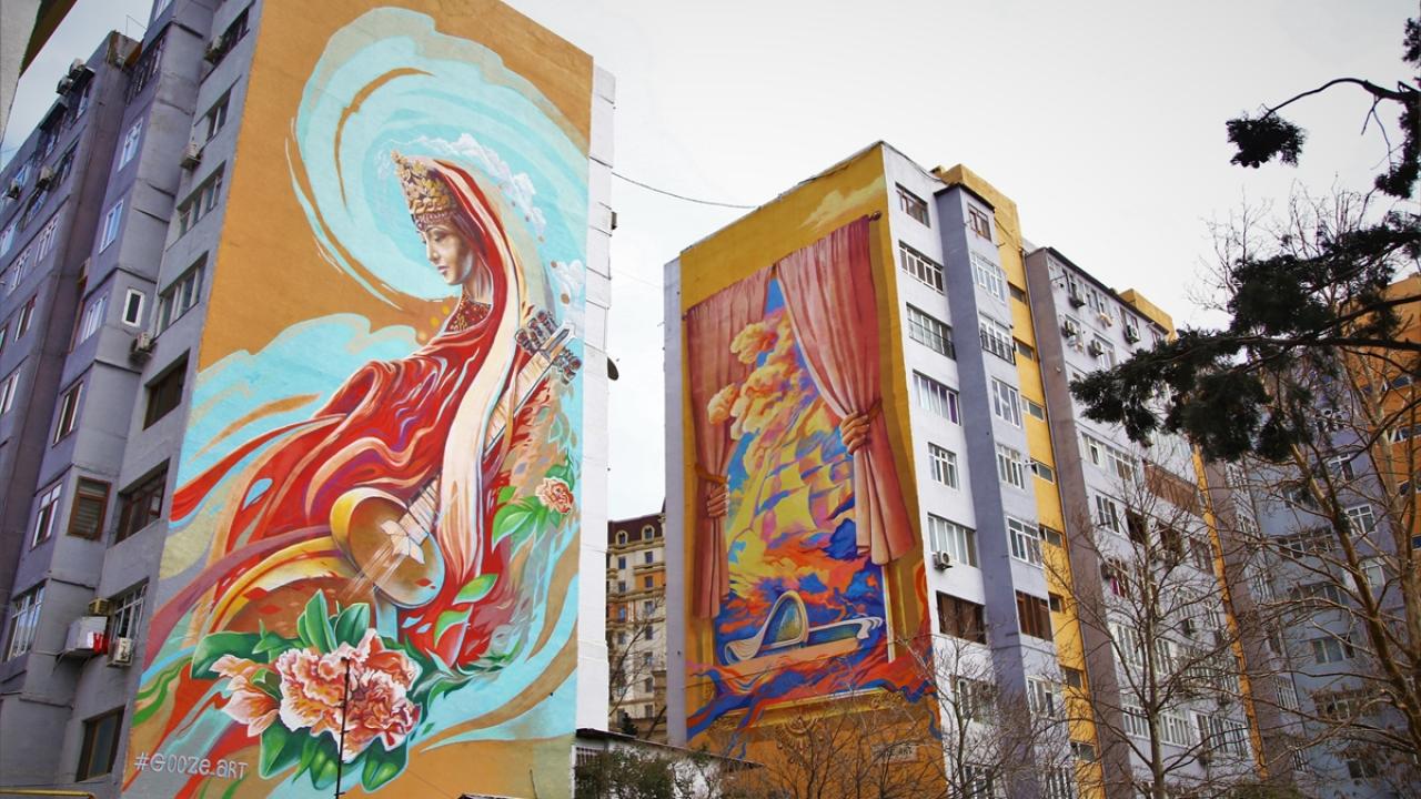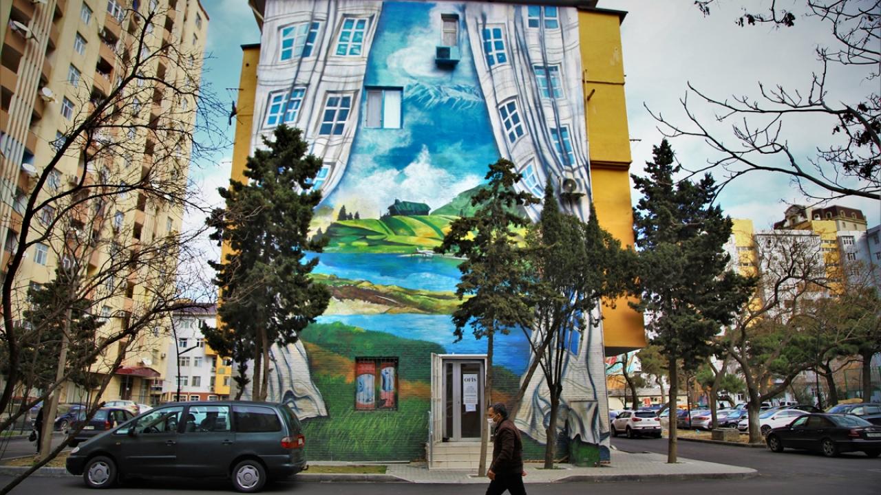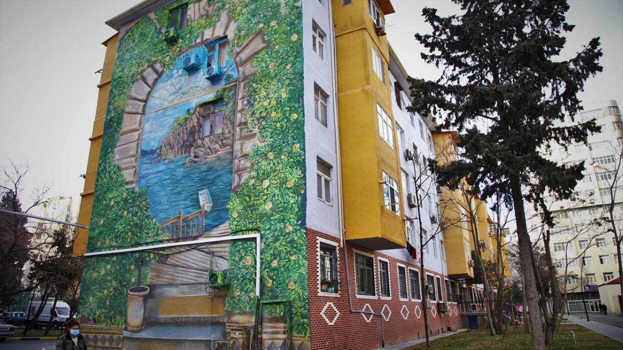 Bazı binalarda Azerbaycan`ın tarihi ve kültürel özelliklerini, bazılarında da ressamların hayal dünyalarını yansıtan resimler mahallelere renk katmış durumda.