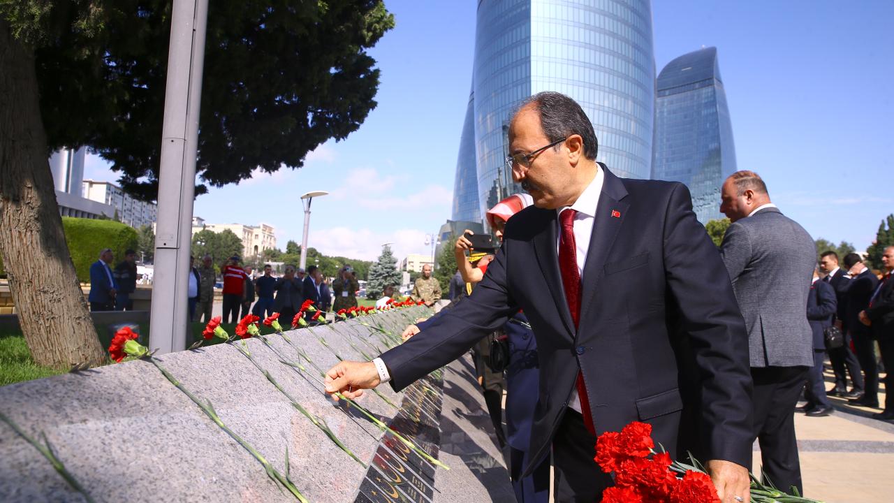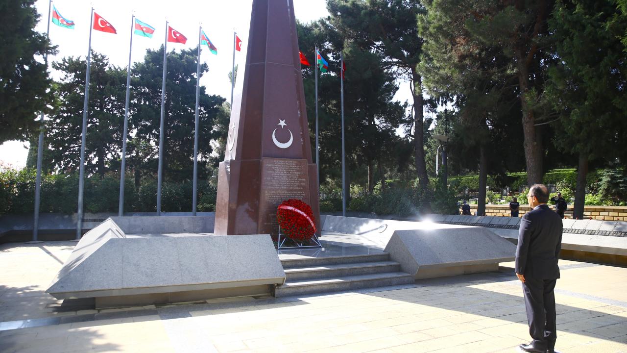 İstiklal Marşı ve Azerbaycan Milli Marşı`nın okunduğu törende Büyükelçi Bağcı, şehitlik anıtına çelenk sundu.