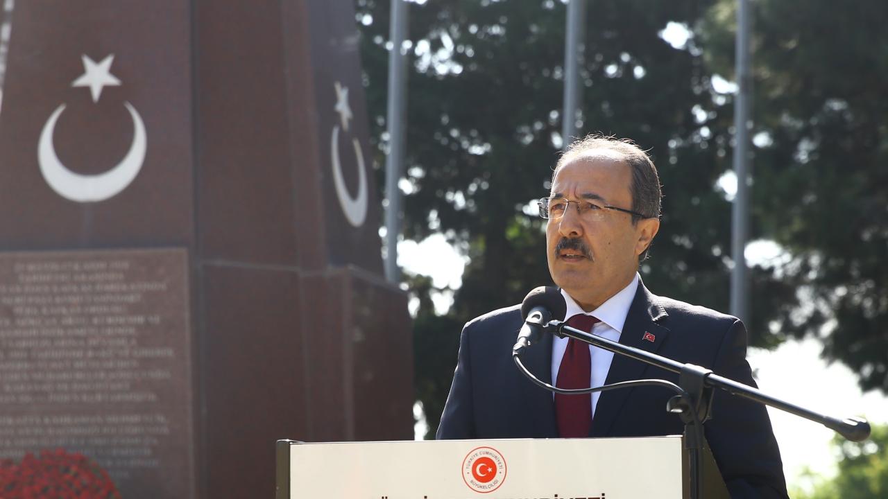 Şehitlik defterini imzalayan Bağcı, temsili şehit mezarlarına karanfil bıraktı.