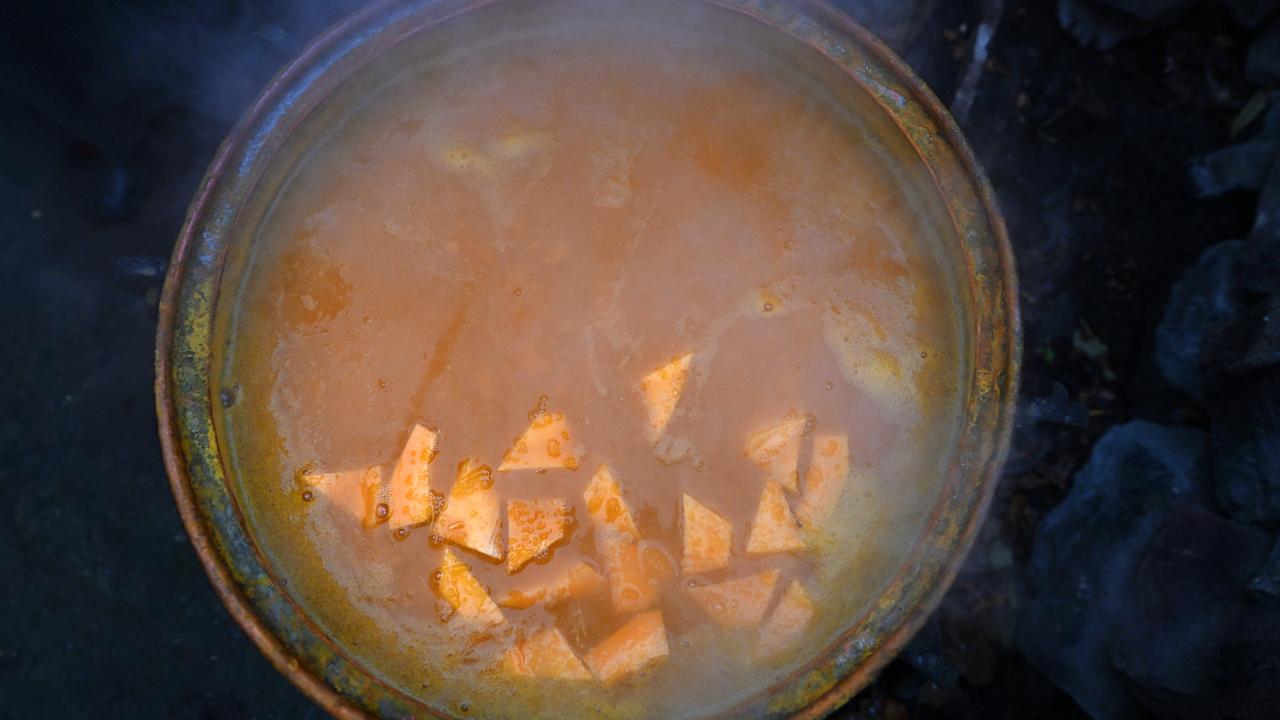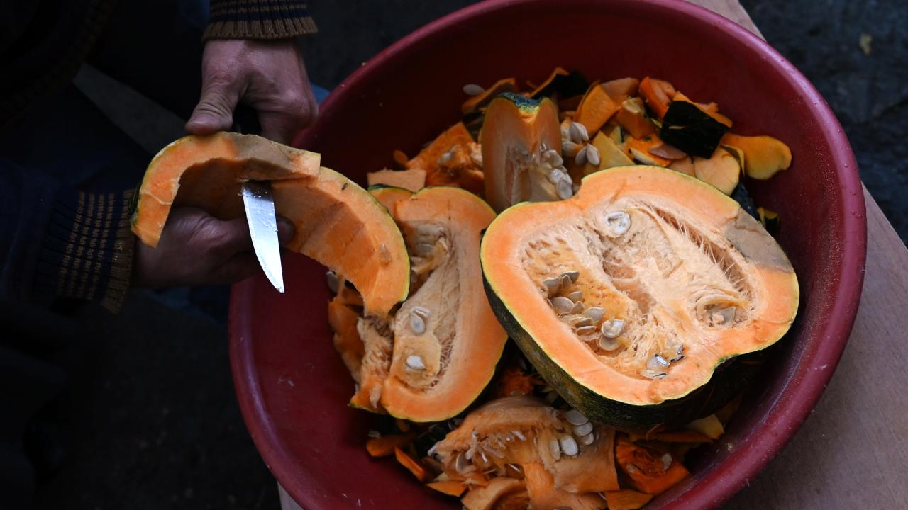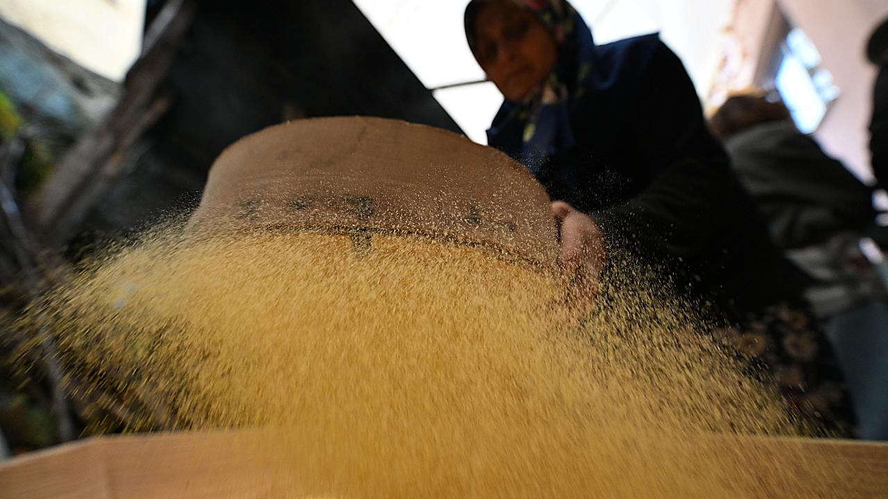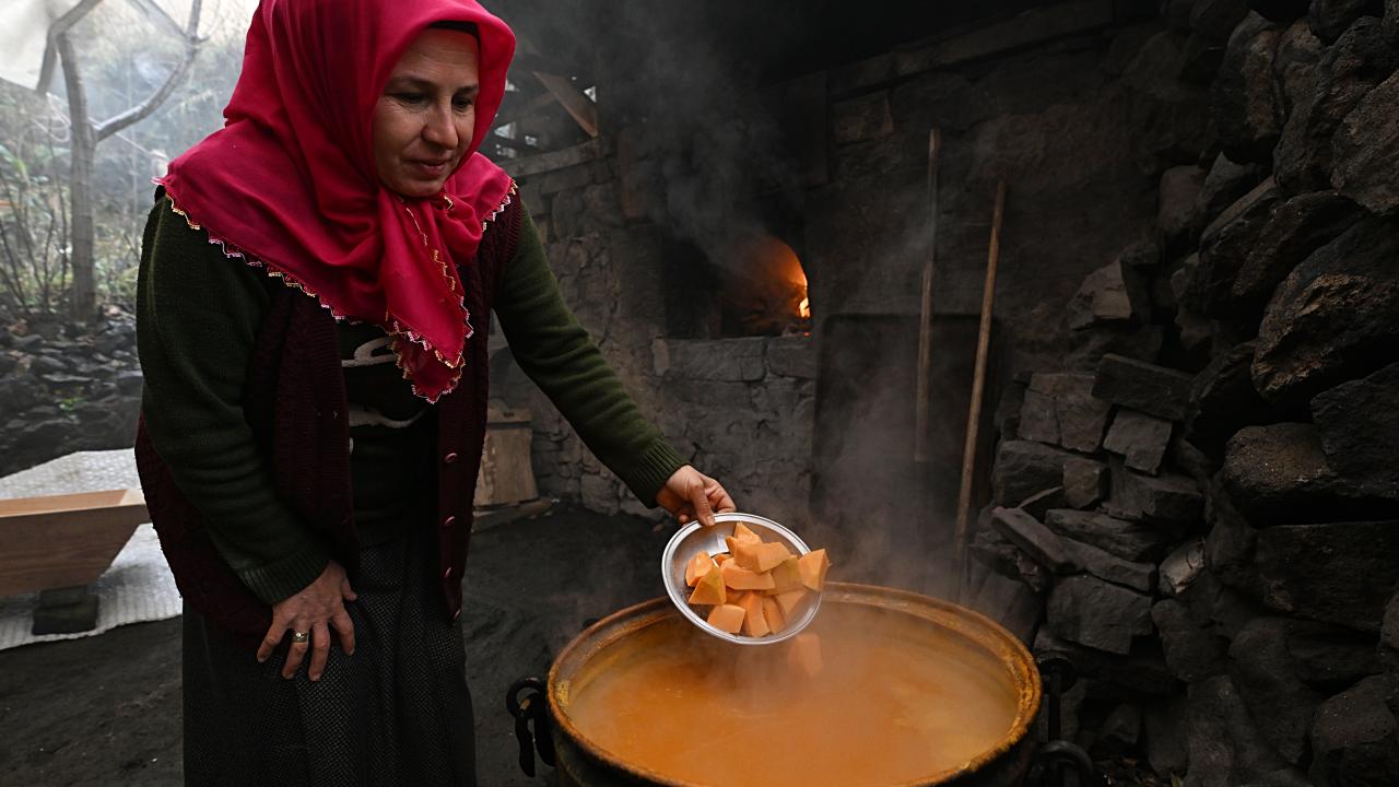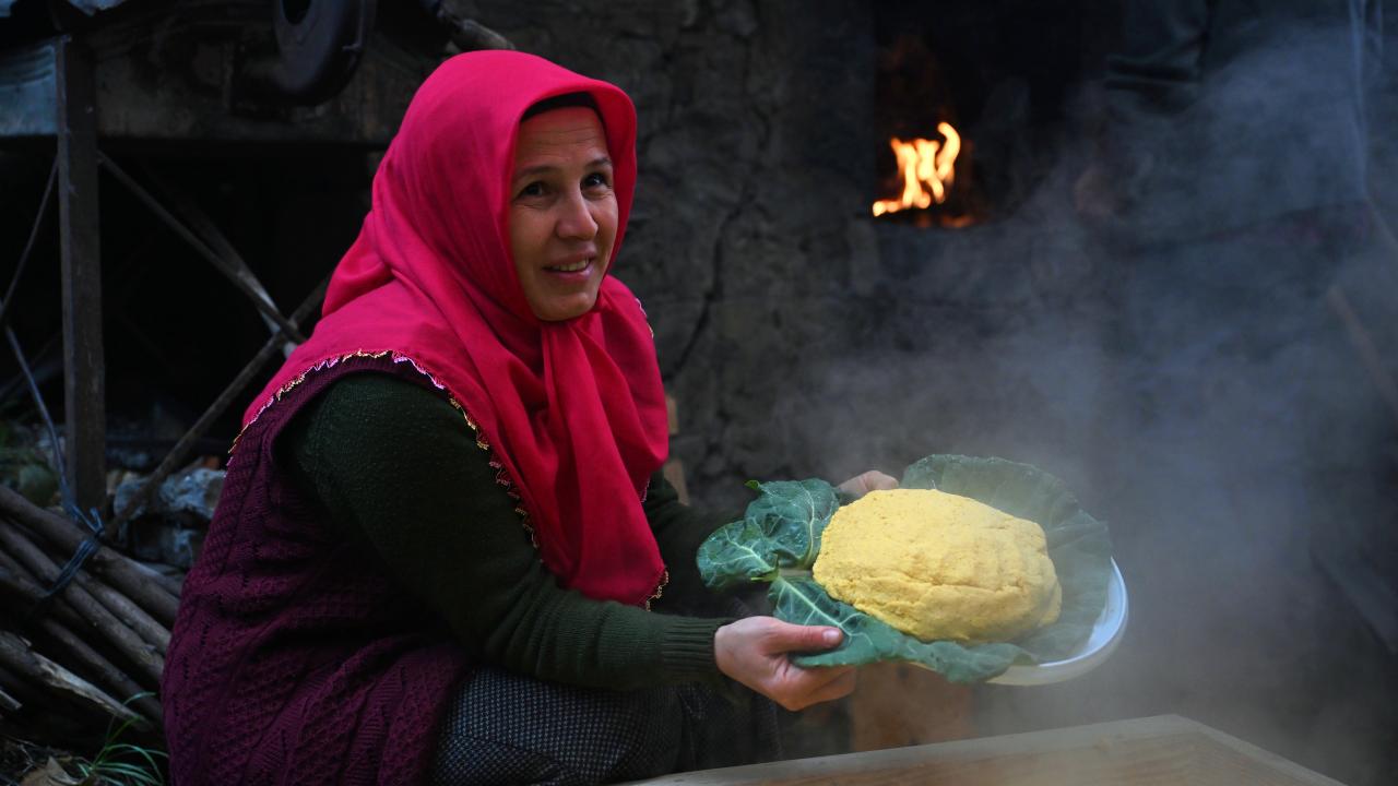 Tarlalarında yetişen bal kabaklarını toplayıp sabahın erken saatlerinde kazanda pişirmeye başlayan aile üyeleri, ahşap ekmek teknesinde mısır ununu eleyip tuz ve az miktarda buğday unuyla buluşturuyor.