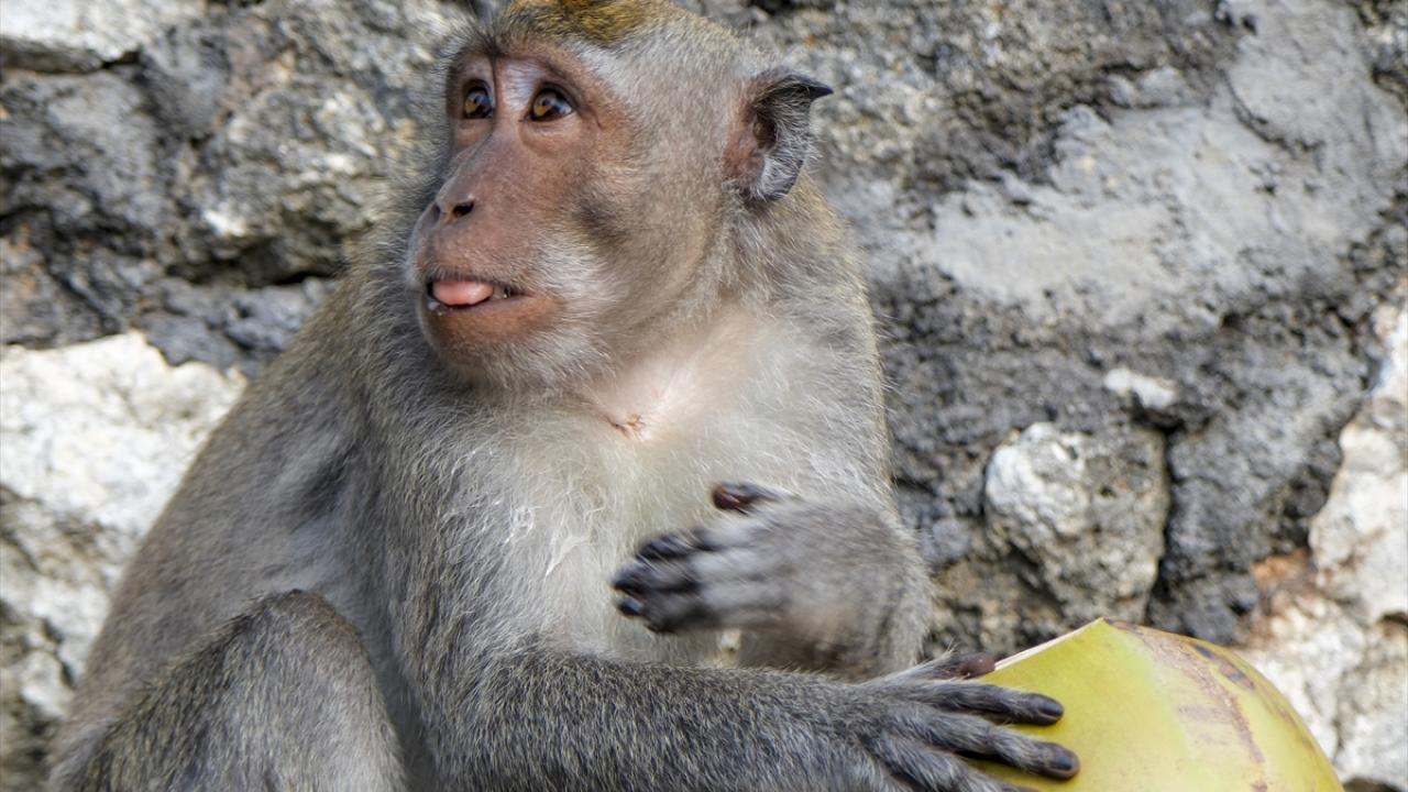 Turistlerin çeşitli meyvelerle besleme imkanı bulduğu maymunlar, yakından gözlemlenebiliyor.