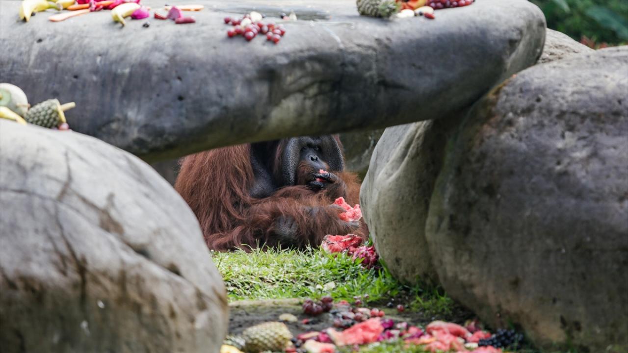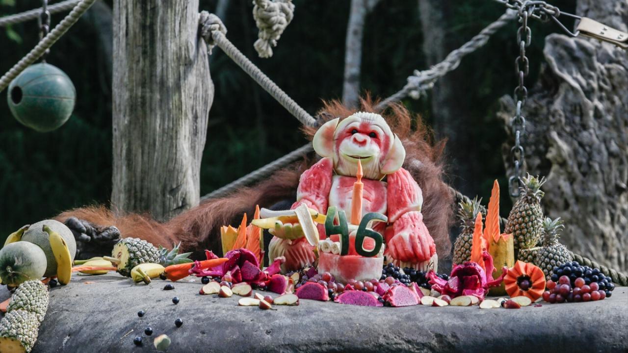 Endonezya'nın Bali adasının Gianyar bölgesinde yer alan Bali Hayvanat Bahçesi'nde yaşayan Bali'nin en yaşlı erkek Borneo orangutanı Jacky için doğum günü kutlaması düzenlendi.
