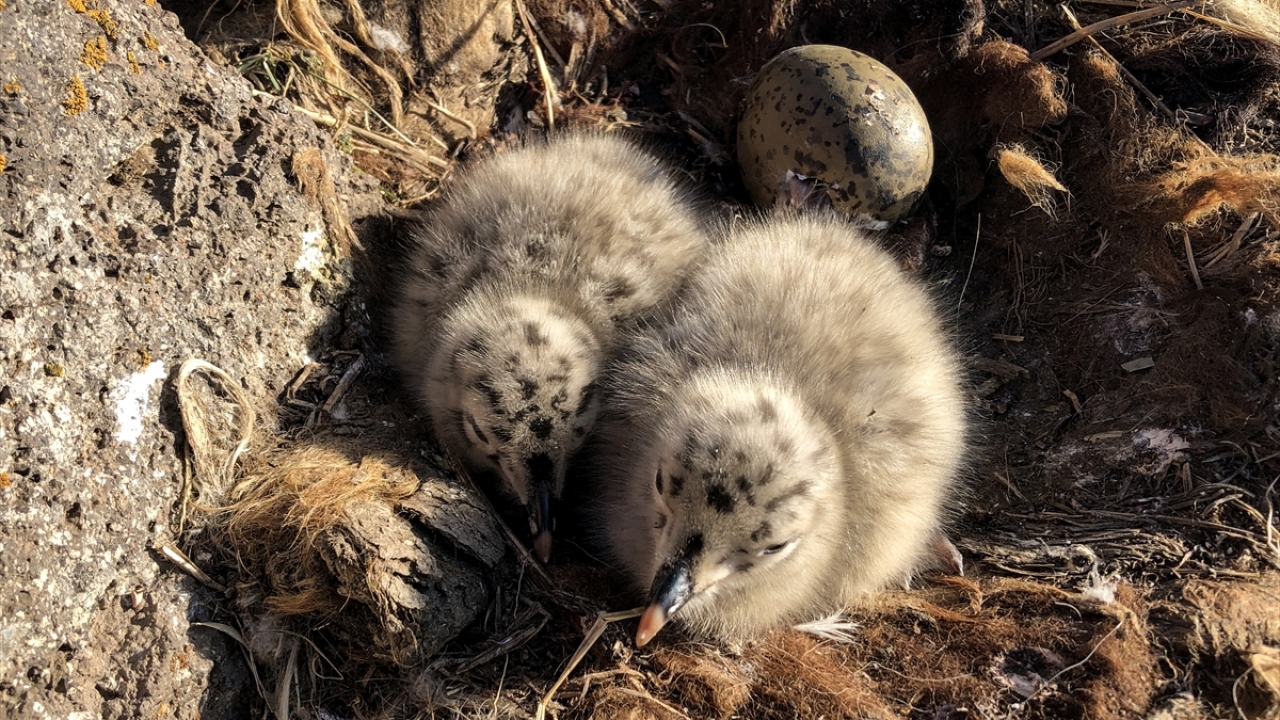 Neredeyse tüm taşların dibinde bir martı yuvası, yumurtalar veya yumurtadan yeni çıkmış martı yavruları görülebiliyor.