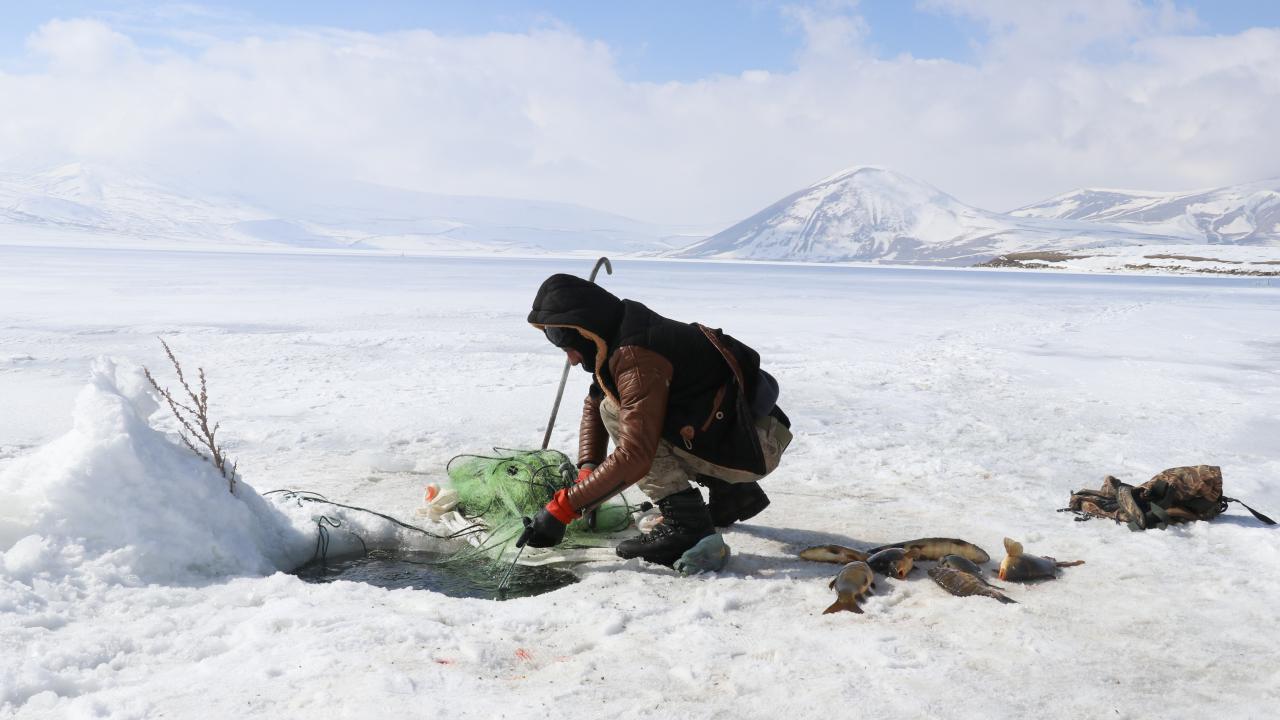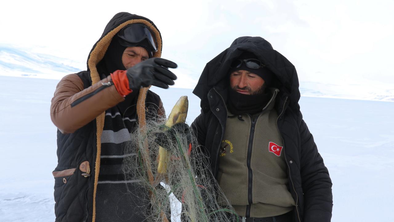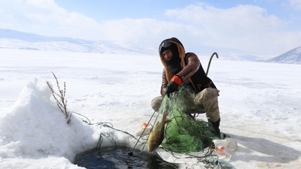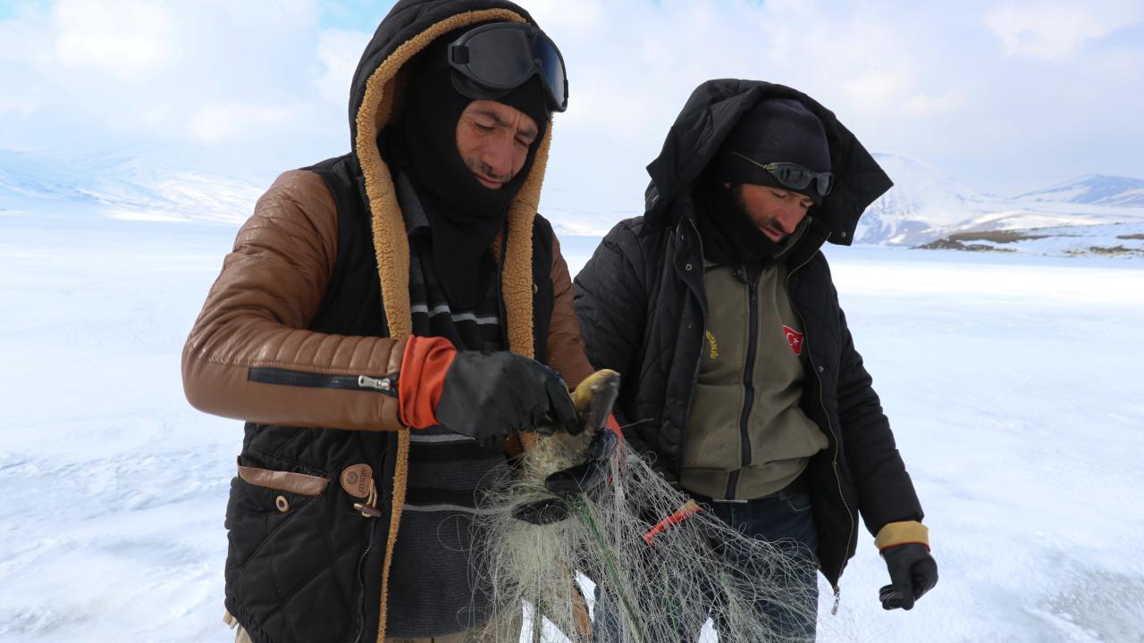 Yıldız, kopan buz parçaları nedeniyle ağlarının gölde kaybolduğunu belirterek, "Bu da bizim işin ne kadar tehlikeli olduğunu gözler önüne seriyor. Bugünlerde çok şiddetli fırtına var. Geçen seneye göre bu yıl daha az balık avladık. Yine de şükrediyoruz" diye konuştu.