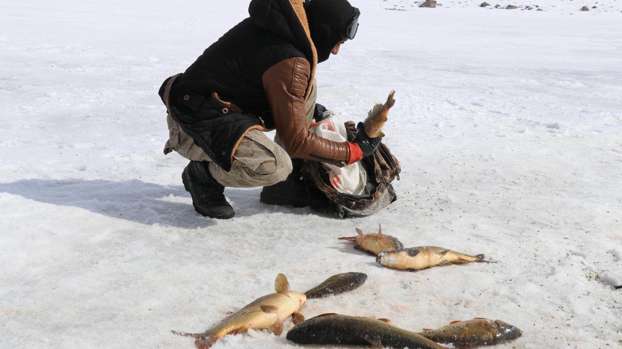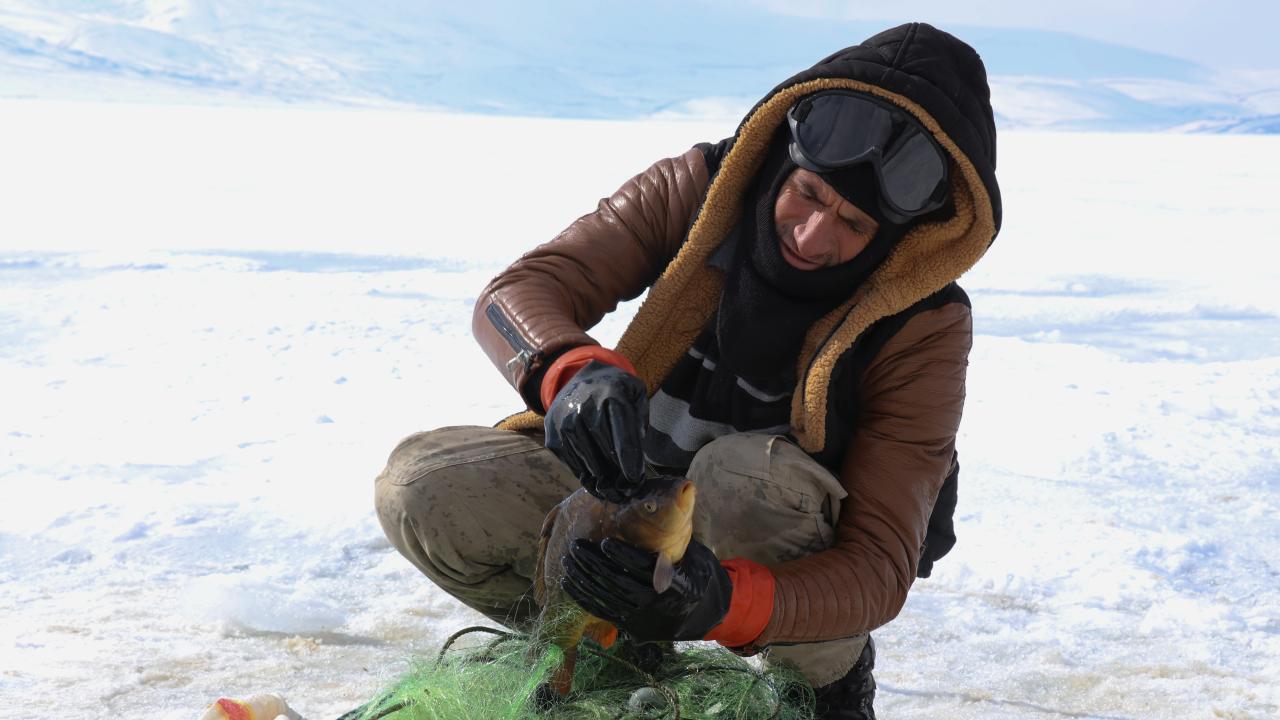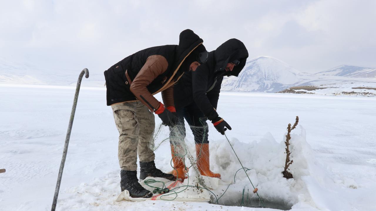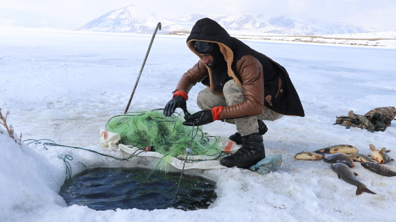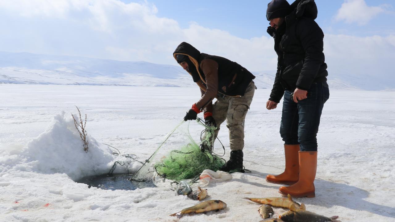 Yıldız, kopan buz parçaları nedeniyle ağlarının gölde kaybolduğunu belirterek, "Bu da bizim işin ne kadar tehlikeli olduğunu gözler önüne seriyor. Bugünlerde çok şiddetli fırtına var. Geçen seneye göre bu yıl daha az balık avladık. Yine de şükrediyoruz" diye konuştu.
