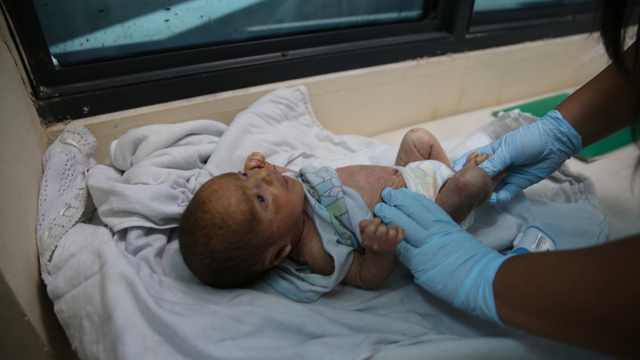 Hatay Valiliği tarafından görevlendirilen sağlık ekiplerince ilk kontrolleri yapılan 18 günlük Mutaz, Hatay’ın Reyhanlı ilçesindeki Cilvegözü Sınır Kapısı`ndan ambulansla alarak tedavi için Hatay Devlet Hastanesine sevk edildi.