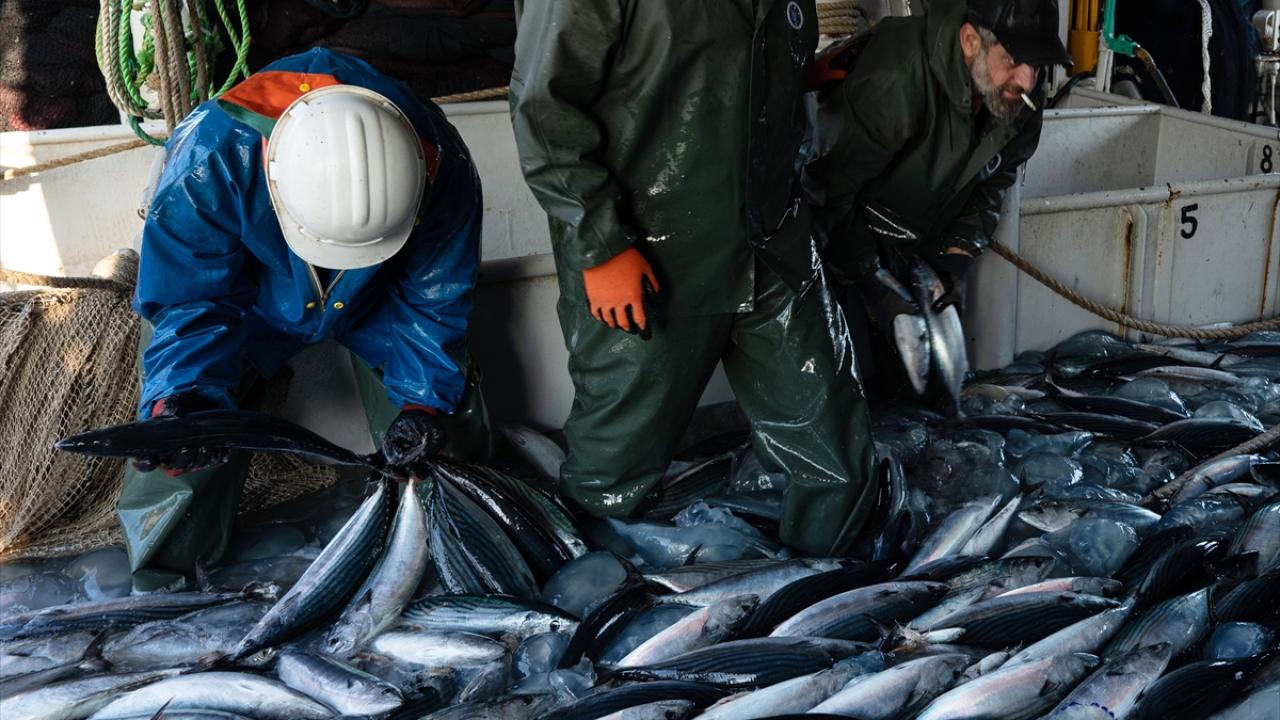 İstanbul Boğazı'nda ağ atan balıkçılar, zorlu geçen mesailerinin ardından yakaladıkları palamutlarla limana döndü.
