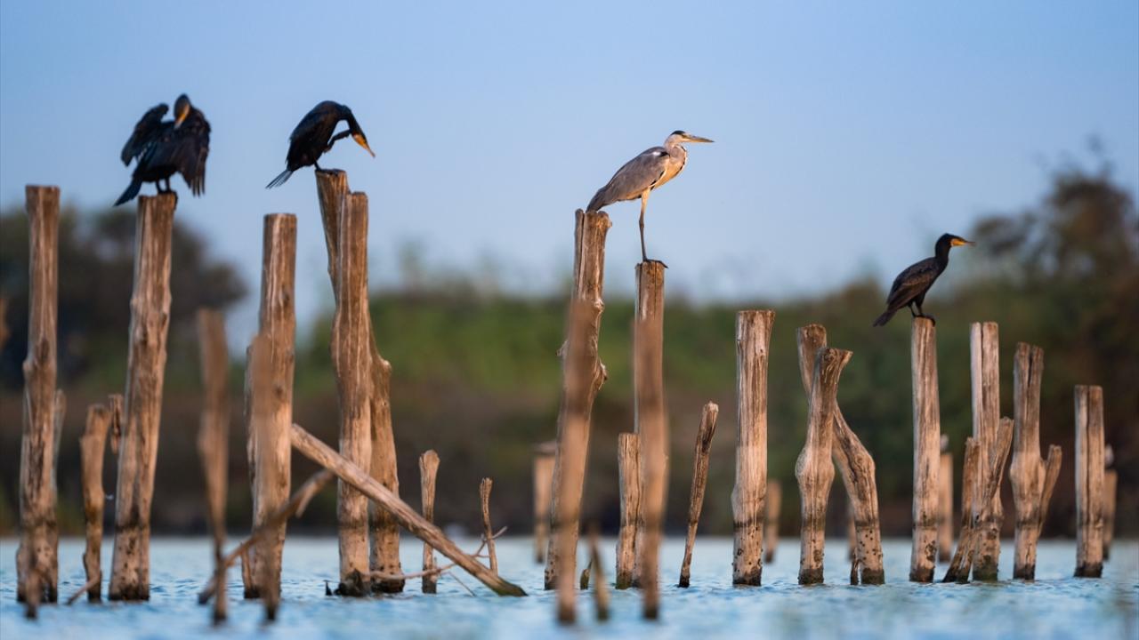 Uzun gagaları ve esnek boyun yapıları sayesinde hareketli su canlılarını ustalıkla avlayan balıkçıllar, deltada renkli görüntüler oluşturdu.