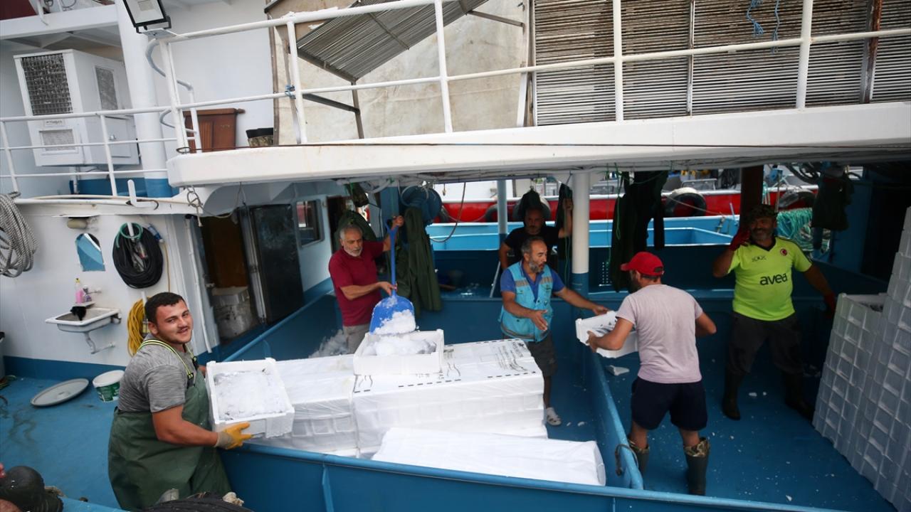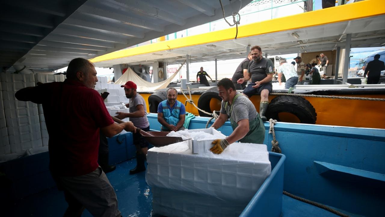Yakalanan yaklaşık 10 bin palamut, limanda kendilerini bekleyen araçlara yüklenerek çevre illerin yanı sıra İstanbul ve Ankara`ya gönderildi.