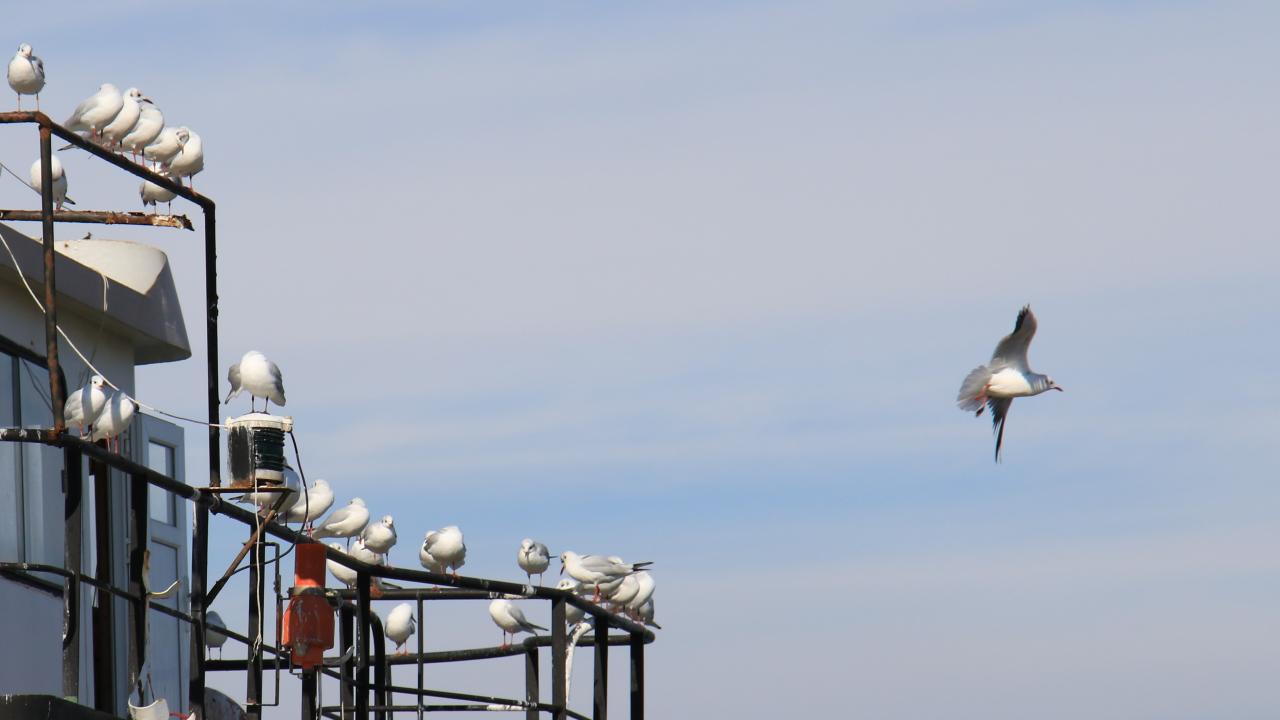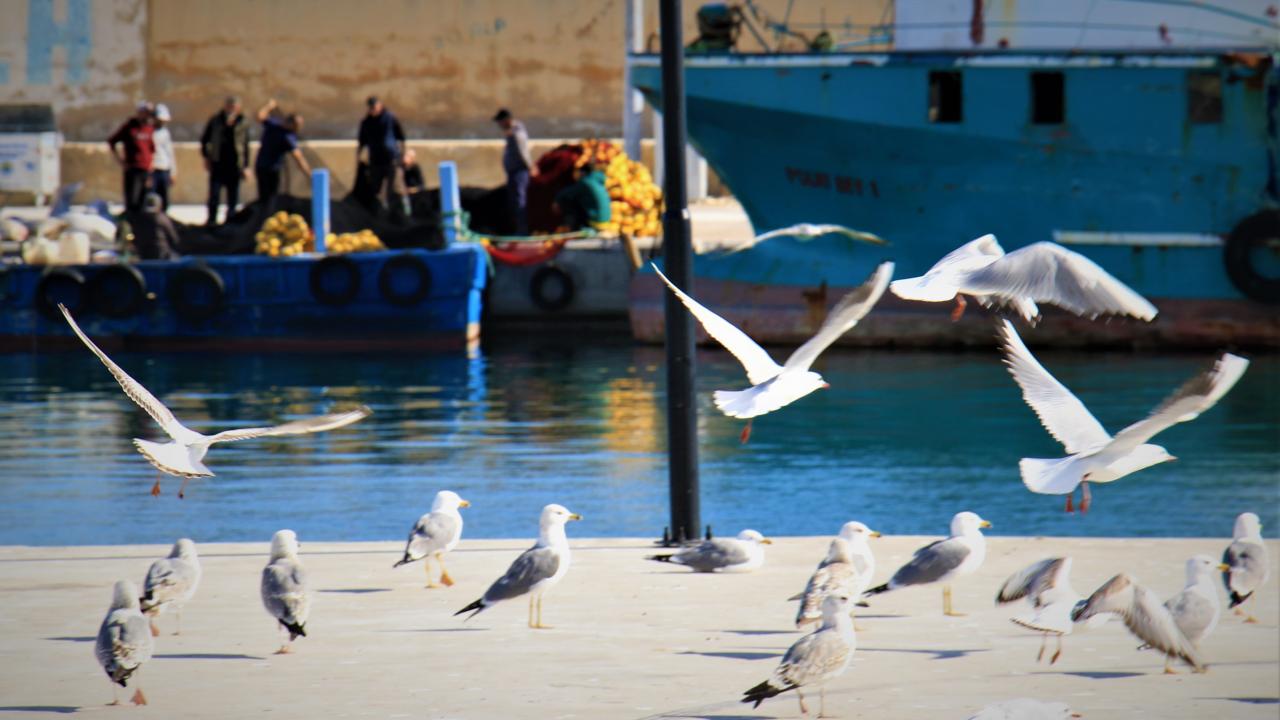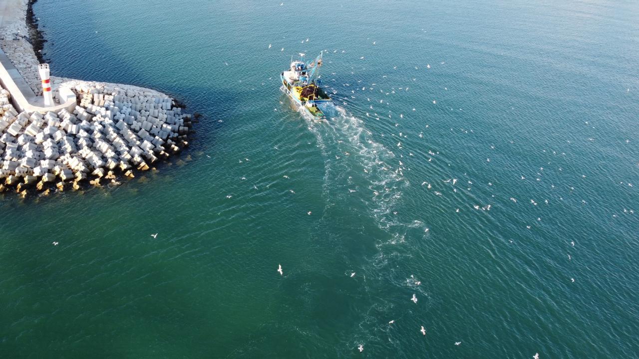 Barınak dışından itibaren tekneleri takip eden martıları ise balıkçılar ıskarta balıklarla besliyor.