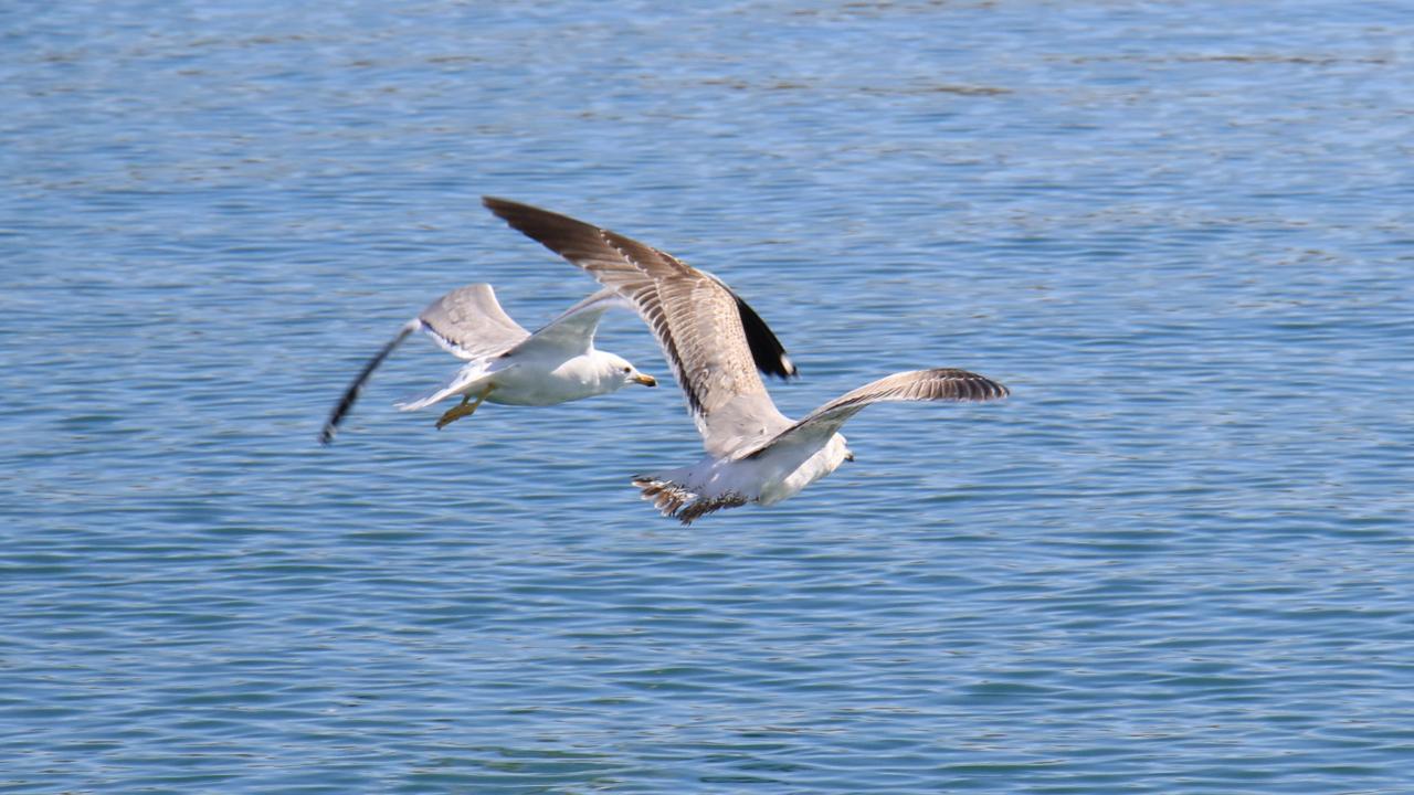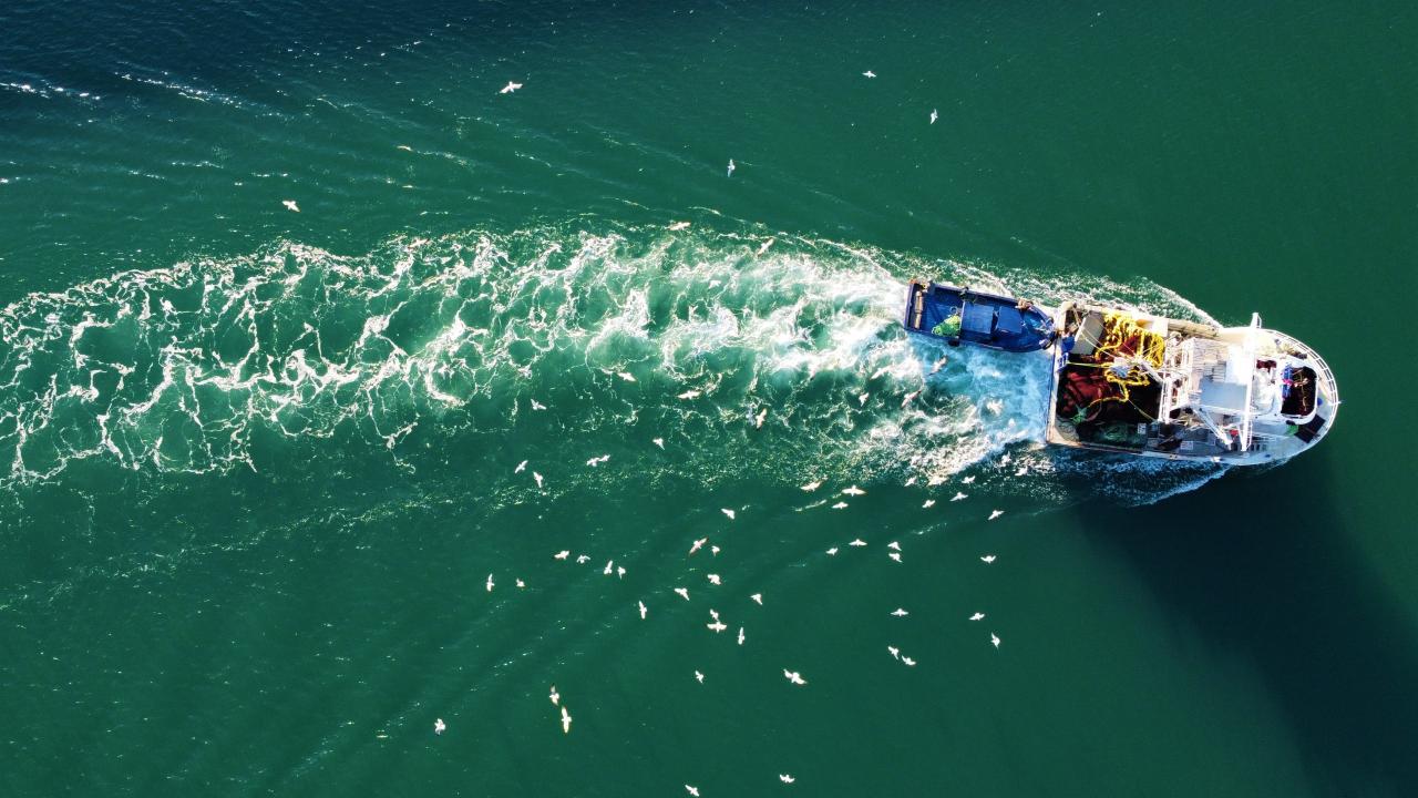 Yüzlerce martının beslenmek için tekneleri takip etmesi ise dronla görüntülendi.