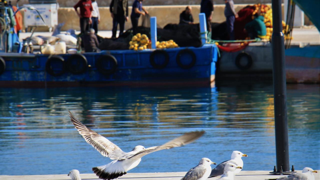 Erdemli ilçesinde bulunan balıkçı barınağında kıyıdaki tekneler de başta olmak üzere bir çok noktada bekleyen martılar, avdan dönen balıkçıları görmeleri ile hep birden harekete geçiyor.