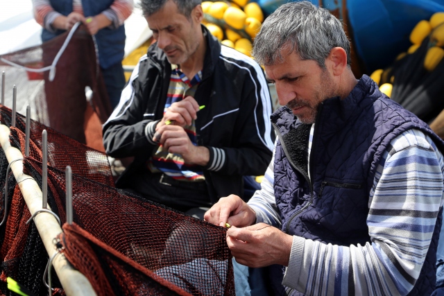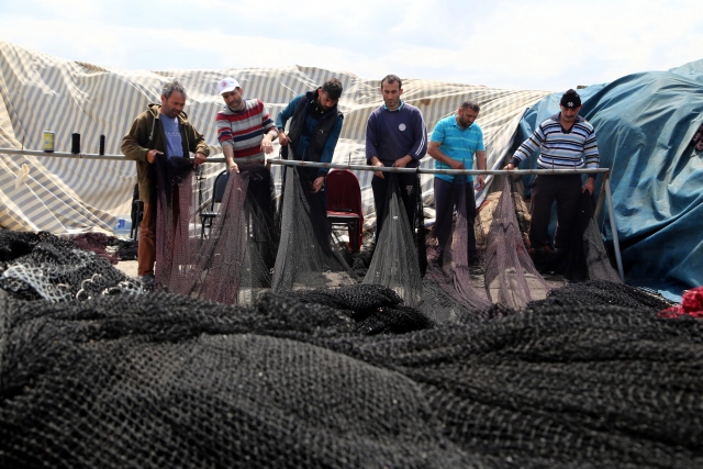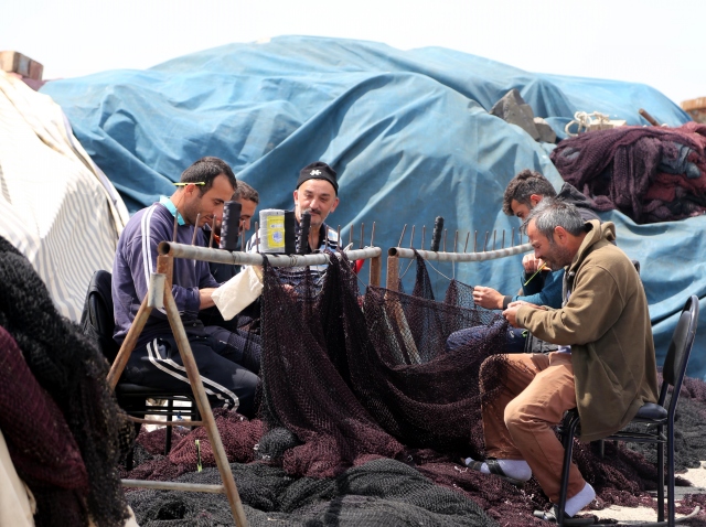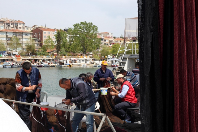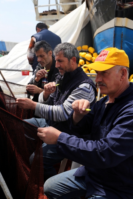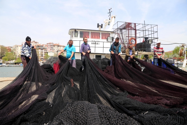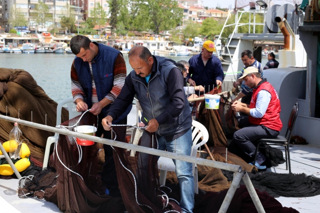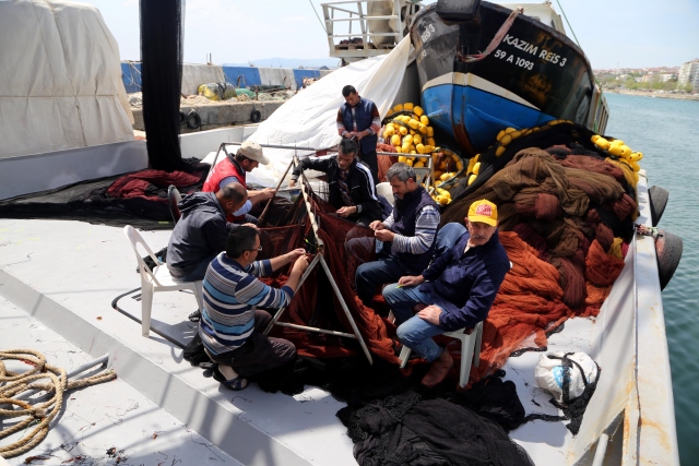 Tekirdağ'da, trol ve gırgır ağlarıyla avcılık yapan balıkçılar, 1 Eylül'de "Vira Bismillah" diyebilmek için günlük mesailerini ağlarını onarmak için harcıyor.