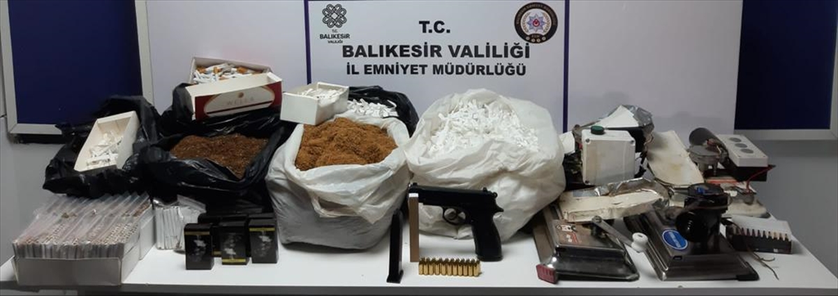 Zanlılara ait adreslerde gerçekleştirilen aramalarda 4 ruhsatsız tabanca, 2 ruhsatsız tüfek, 1 kurusıkı tabanca, 31 tabanca fişeği, 8 tüfek kartuşu, 2 kilo 596 gram uyuşturucu, 2 kök kenevir, 950 sentetik ecza hapı, 1 hassas terazi, 133 kilo bandrolsüz tütün, 30 bin dolu makaron, 18 bin 600 boş makaron, 4 sigara sarma makinesi, 24 paket kaçak sigara, 12 elektronik sigara, 172 kaçak puro ve şase numarası kazınmış bir motosiklet ele geçirildi.