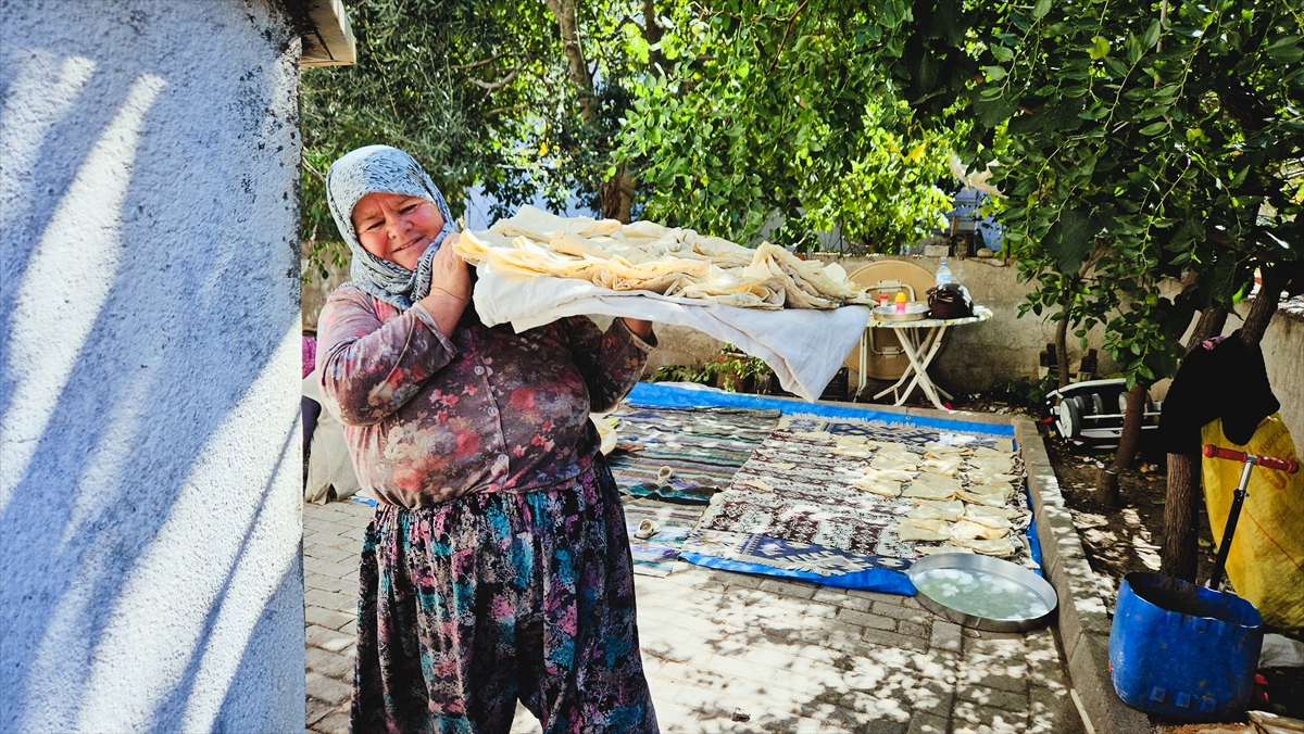 Halime Demirel de komşularıyla birlikte her yıl kışlık yiyecekleri, yufkaları ve makarnaları yaptıklarını dile getirdi.