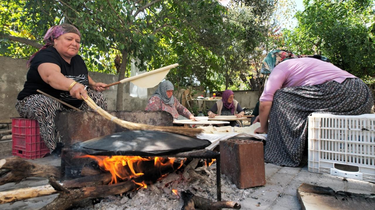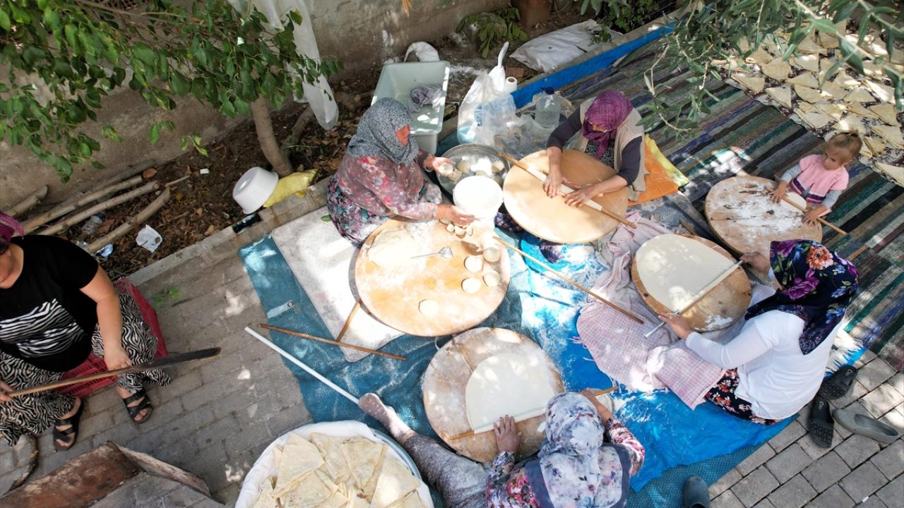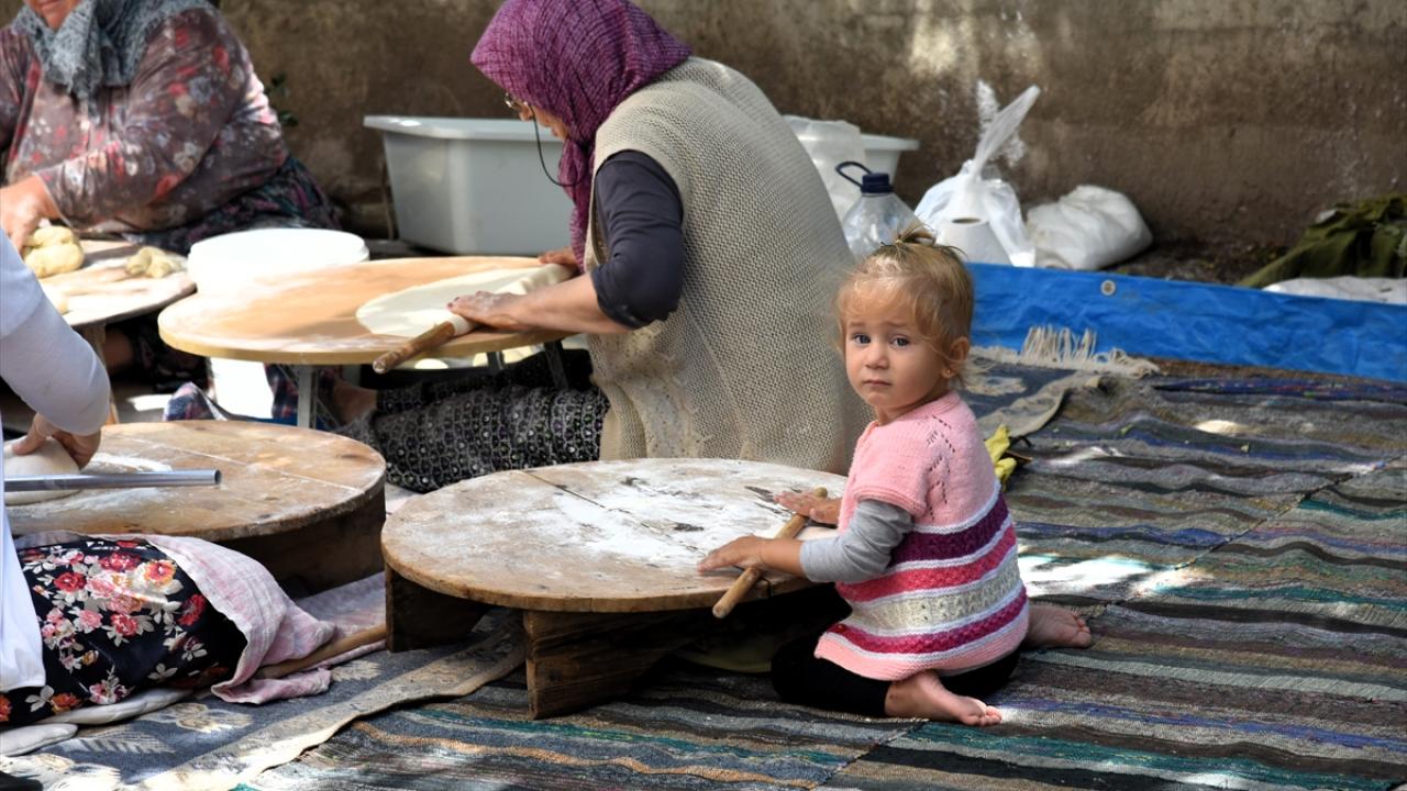 Mahalle kültürünün yaşatıldığı ilçede, kış aylarının yaklaşmasıyla birlikte kadınlar arasında imece usulü yufka yapılıyor.