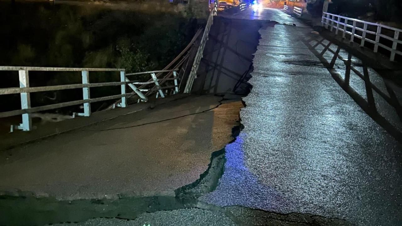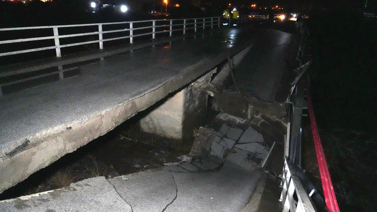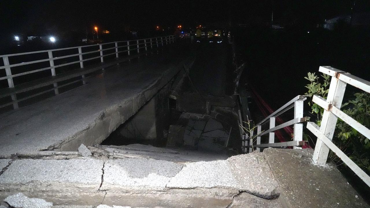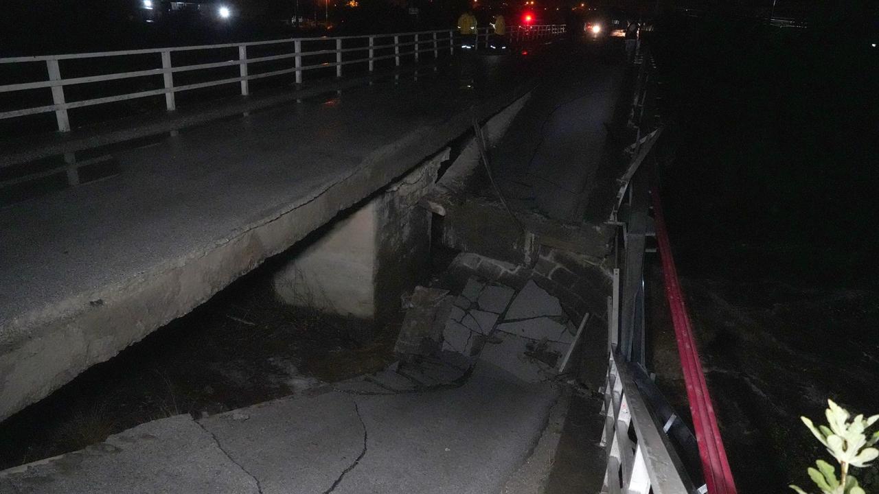 Balıkesir'in Edremit ilçesinde etkili olan sağanak nedeniyle Zeytinli Çayı üzerinde bulunan köprü çöktü.