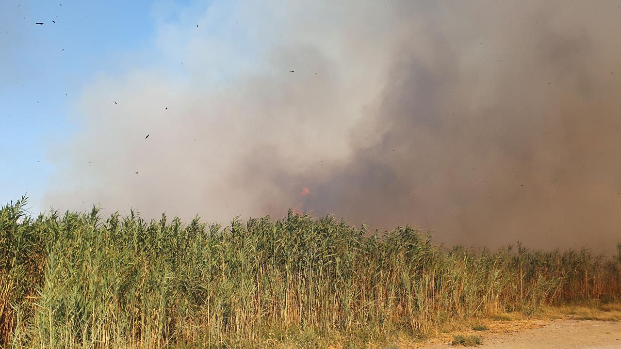 Yangın nedeniyle Dalyan Sazlığı`nda 20 dönüm alanın zarar gördüğü belirtildi.