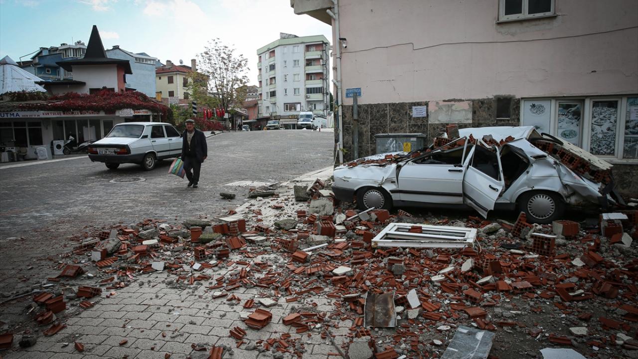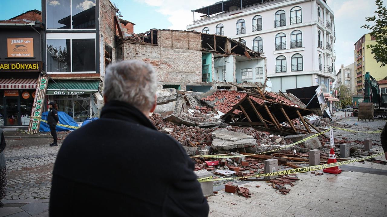 Balıkesir'deki depremde yıkılan binaların enkazı kaldırılıyor