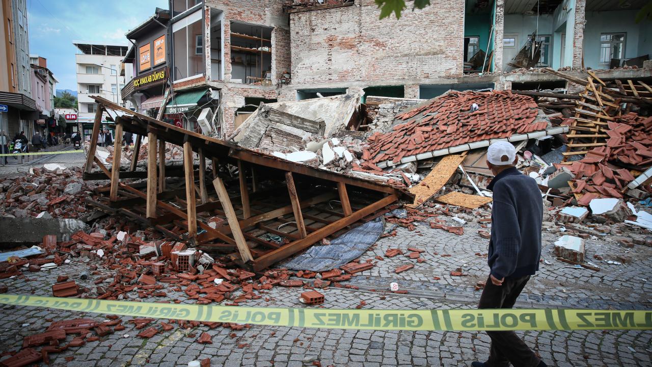 Balıkesir'in Sındırgı ilçesinde dün meydana gelen 6,1 büyüklüğündeki depremin ardından yıkılan binalarda enkaz kaldırma çalışmaları başlatıldı