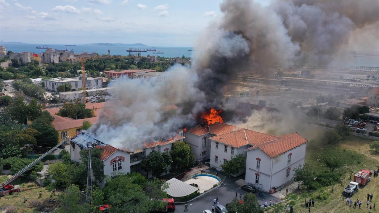 Tarihi binadaki yangın nedeniyle oluşan dumanlar İstanbul`un pek çok ilçesinden görüldü.