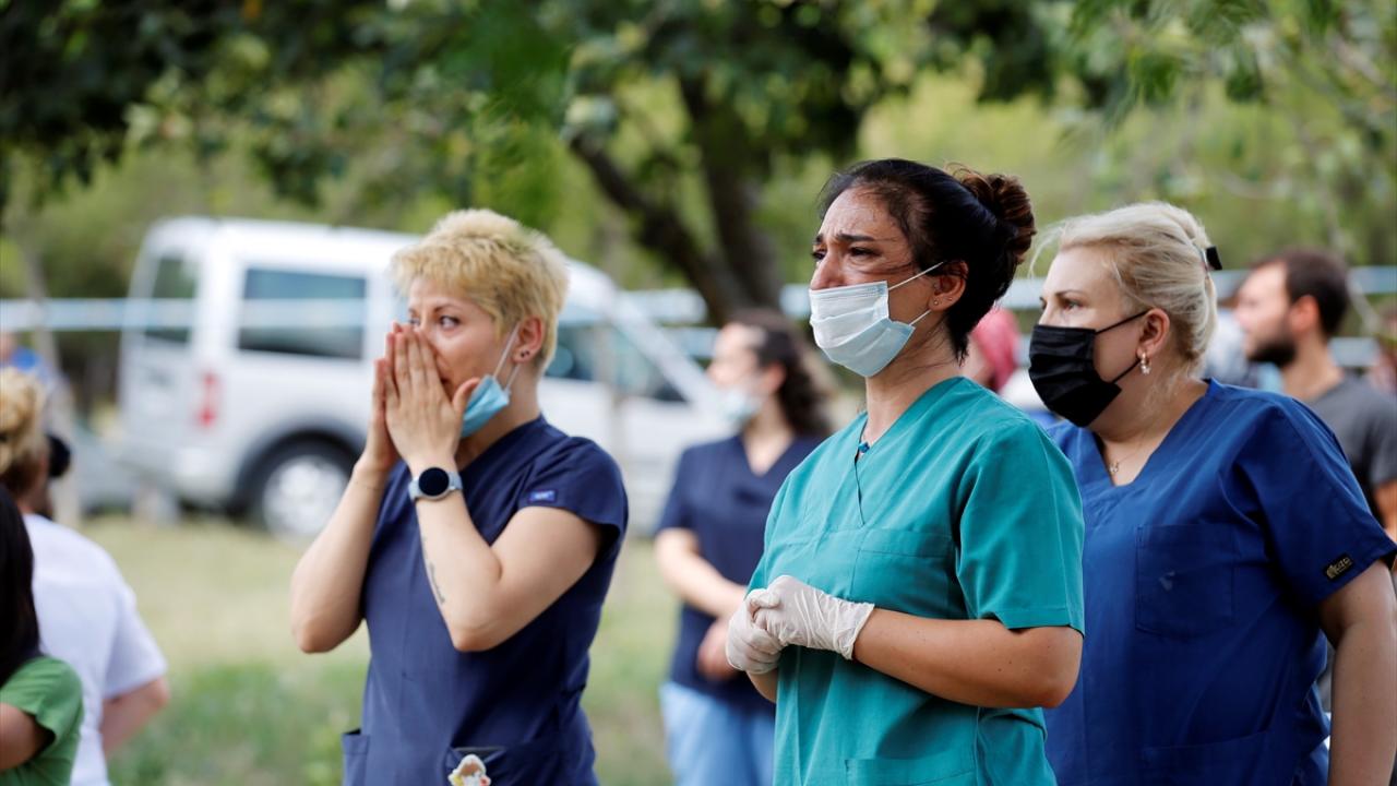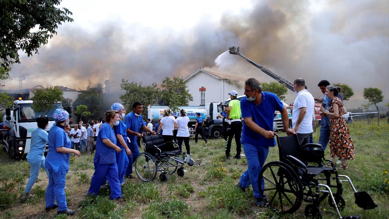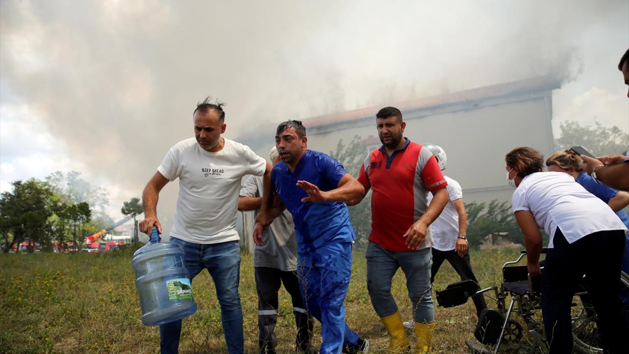 Sağlık çalışanları, itfaiye erleri, zabıta ekipleri ve vatandaşlar, yaşlıları sedye ve tekerlekli sandalyelerle hastaneden uzaklaştırdı. Hastalar bölgedeki diğer hastanelere sevk edildi.