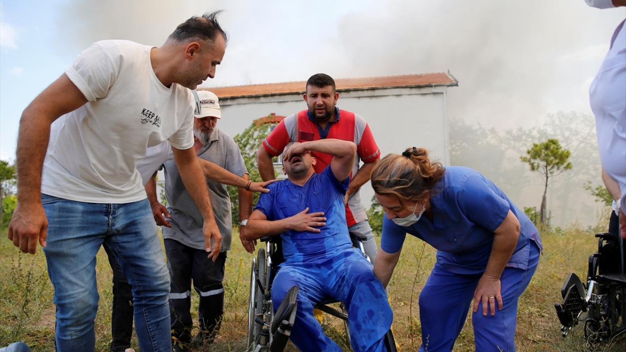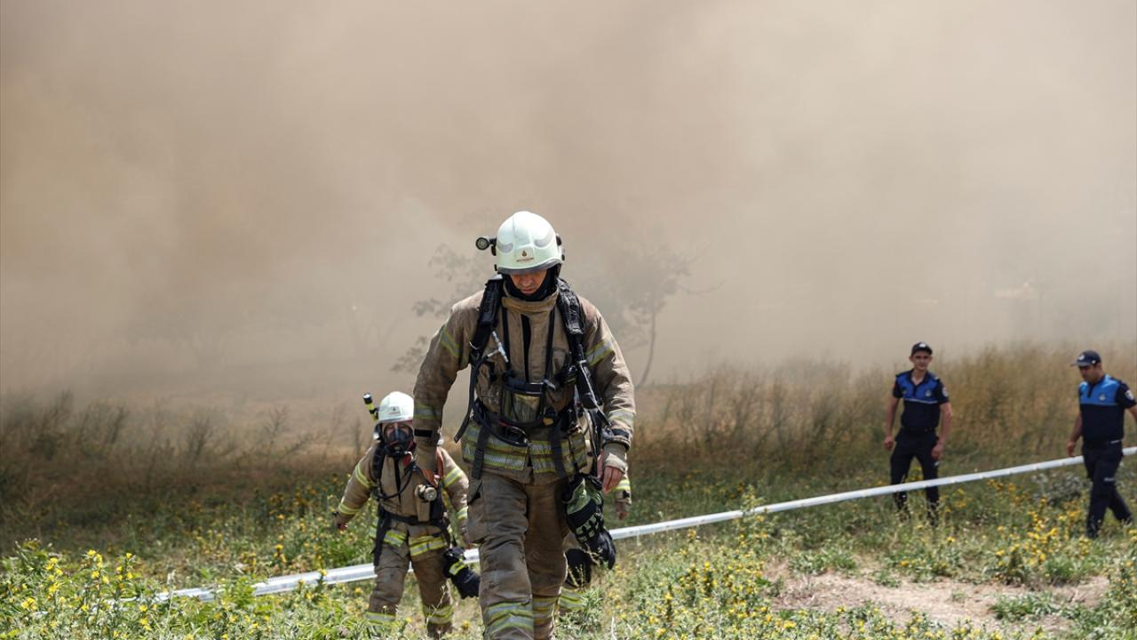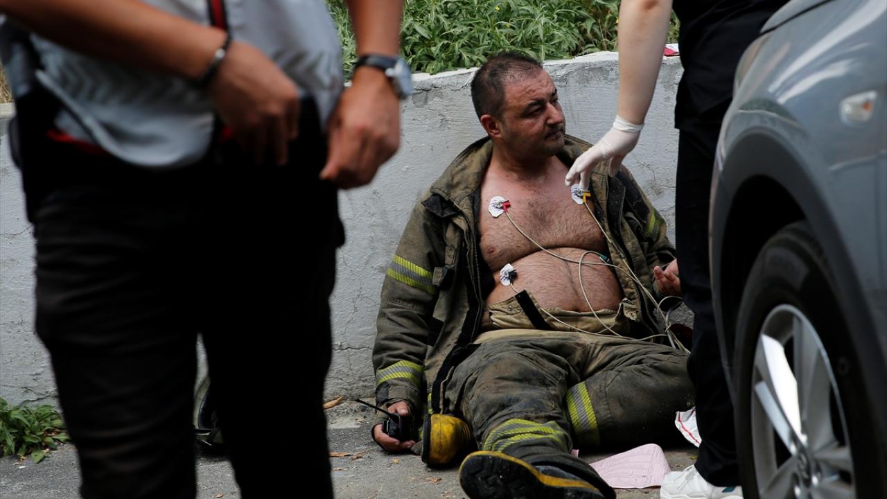 Yangından olumsuz etkilenen itfaiye personeline sağlık ekipleri müdahale etti.