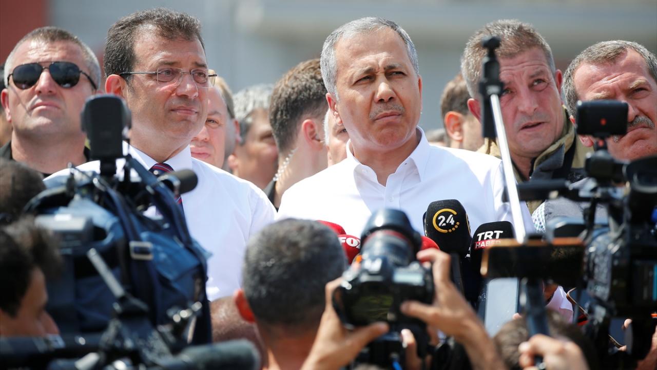 İstanbul Valisi Ali Yerlikaya ve İBB Başkanı Ekrem İmamoğlu yangın bölgesine gitti.
