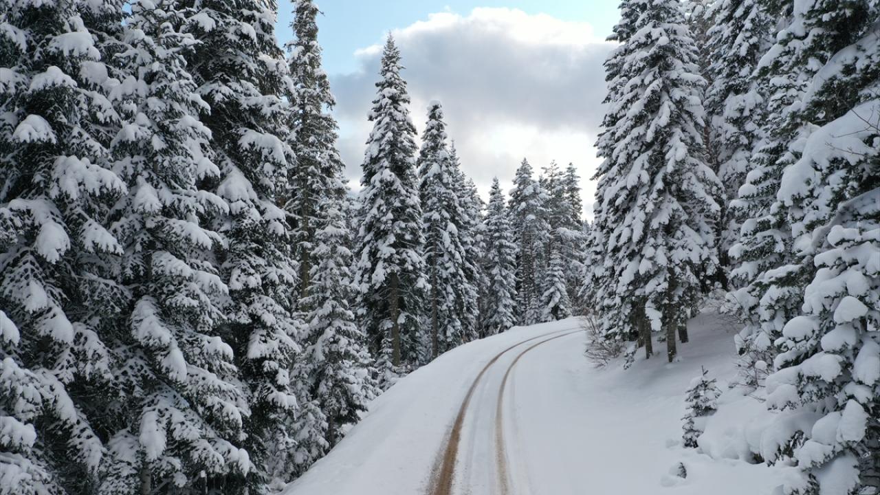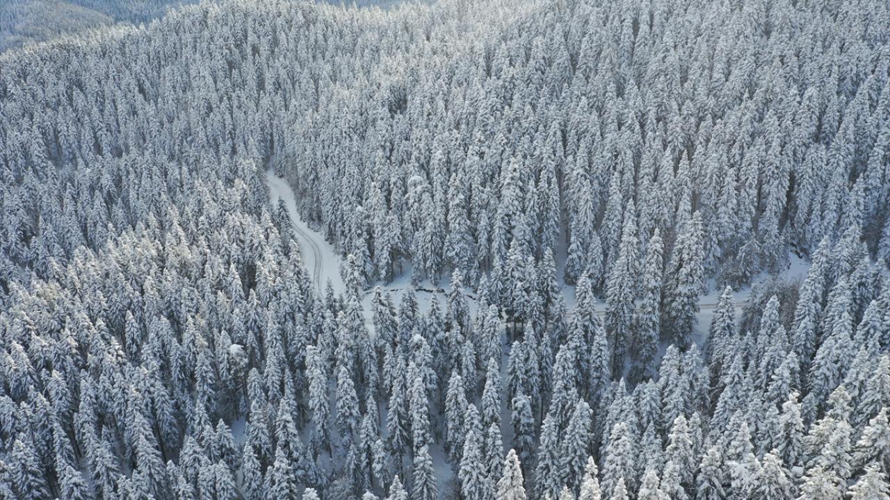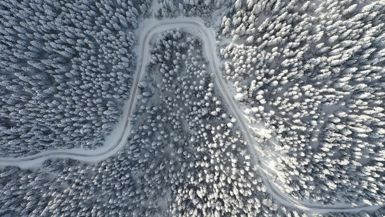 Ballıdağ'ın karla kaplı ormanları dronla görüntülendi