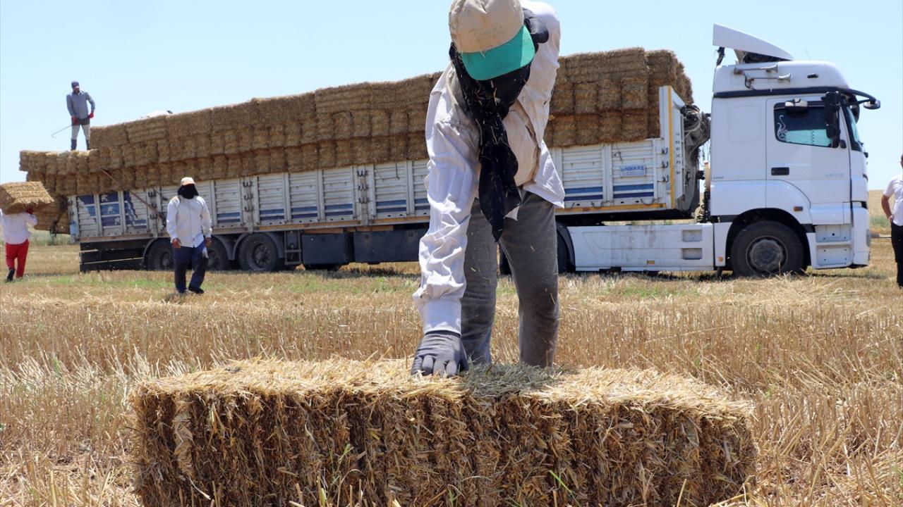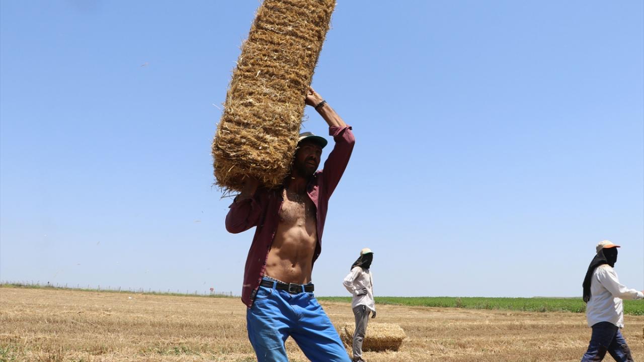 Yakıcı güneşin altında çalışan balya işçileri, bir yandan sıcak hava diğer yandan toz ve sapların neden olduğu kaşıntıdan korunmak için farklı yollar deniyor.