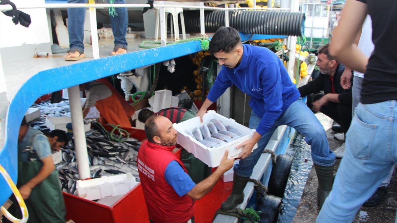 Teknelerden birindeki 2 bin 500 çift palamut, çevredekilerin de ilgiyle izlediği tahliye işlemiyle, şehir içine ve şehir dışına buzlanarak sevk edildi.