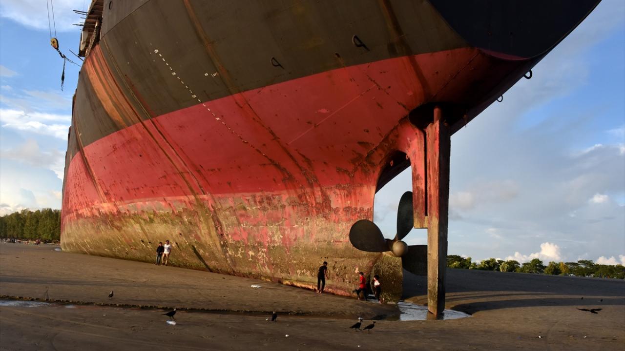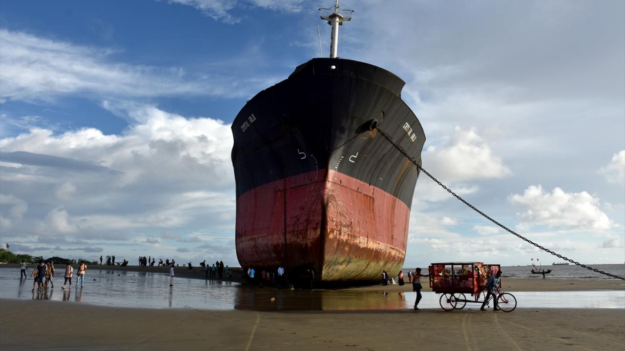 Bangladeş'in Parki Plajı'nda karaya oturan Crystal Gold gemisi