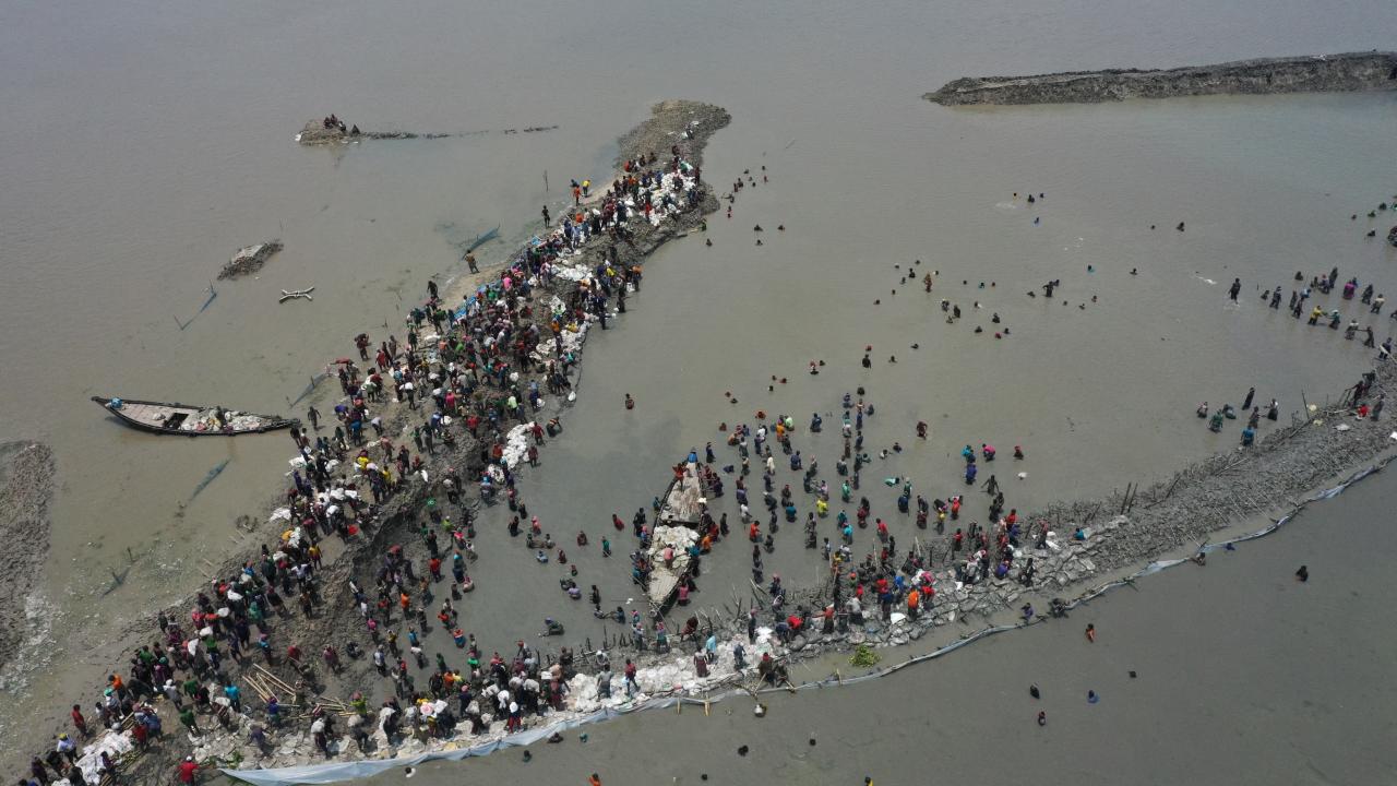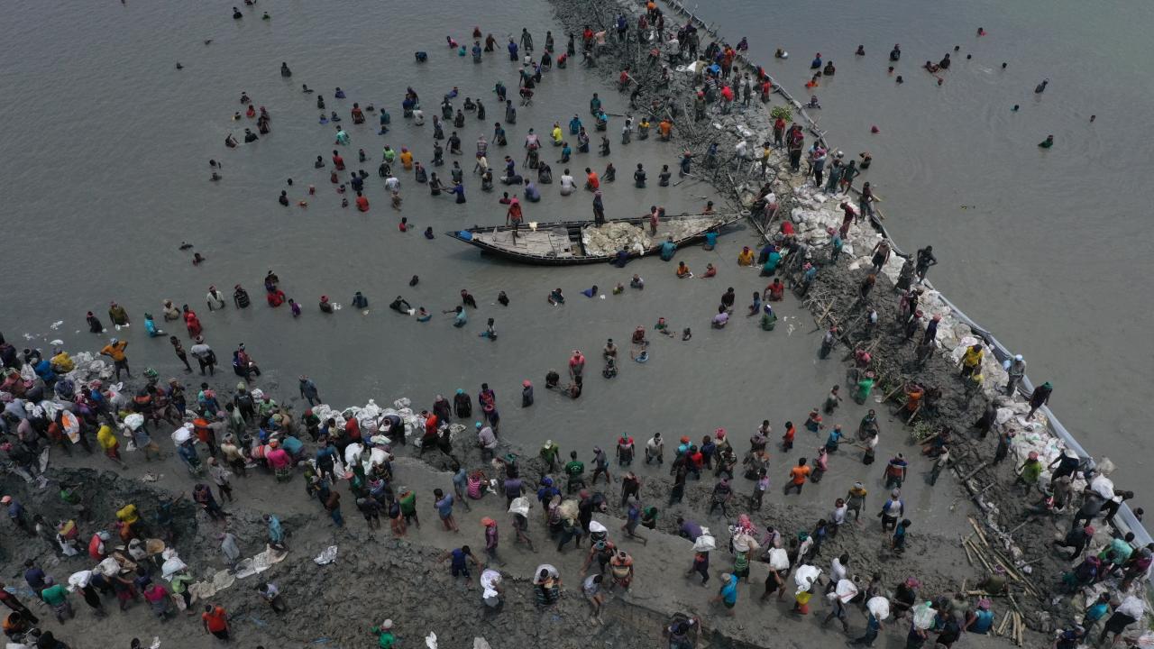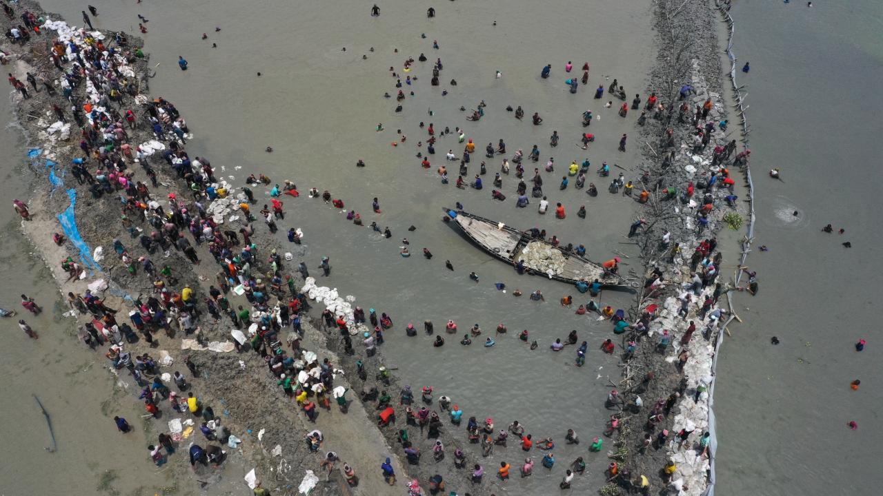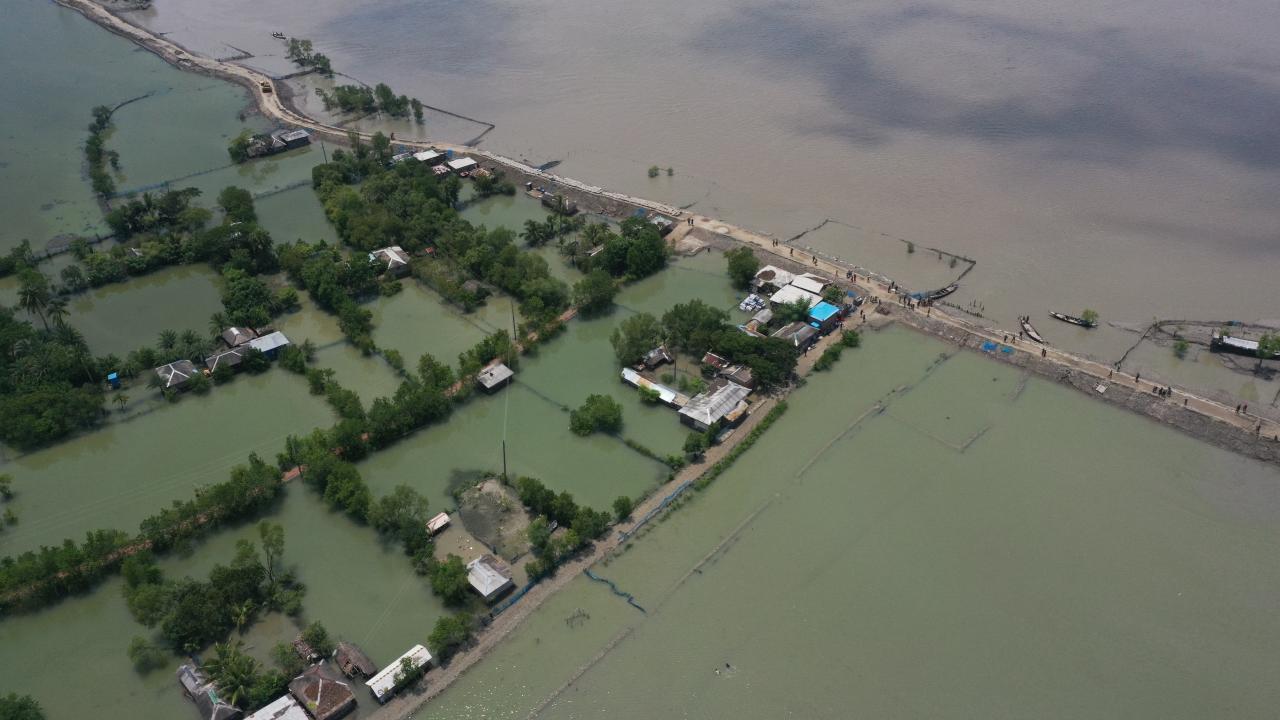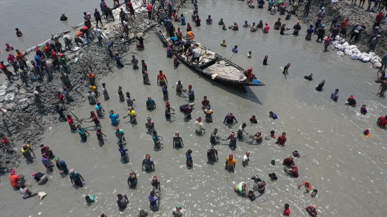 Bangladeş'in Khulna kentinde yükselen sular ve gelgitlerden dolayı kıyı bölgelerinin setleri çöktü. Sel ve tuzlu suyun bölgeye girmesi ekinlere, balıklara ve geçim kaynaklarına zarar verdi. Sahile yakın ikamet eden vatandaşlar kıyı bölgesinde hasar gören yerleri onarmak için çalışıyor.