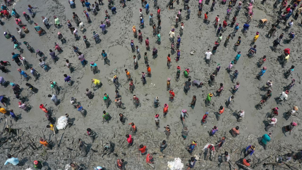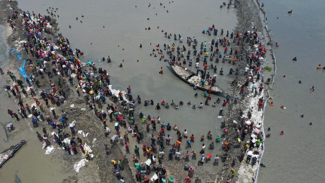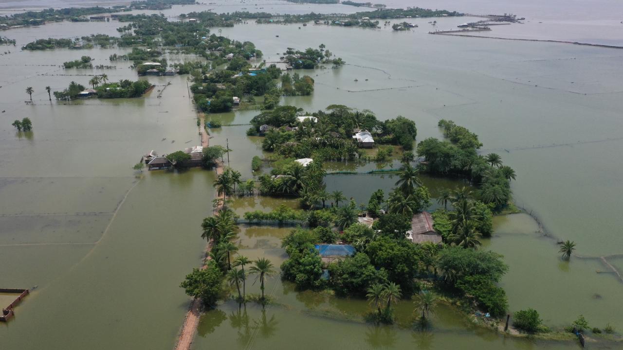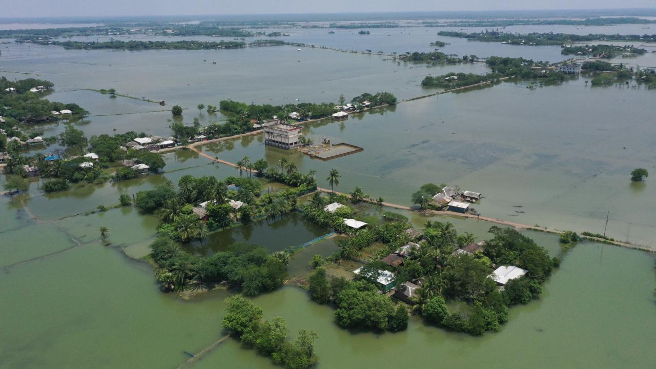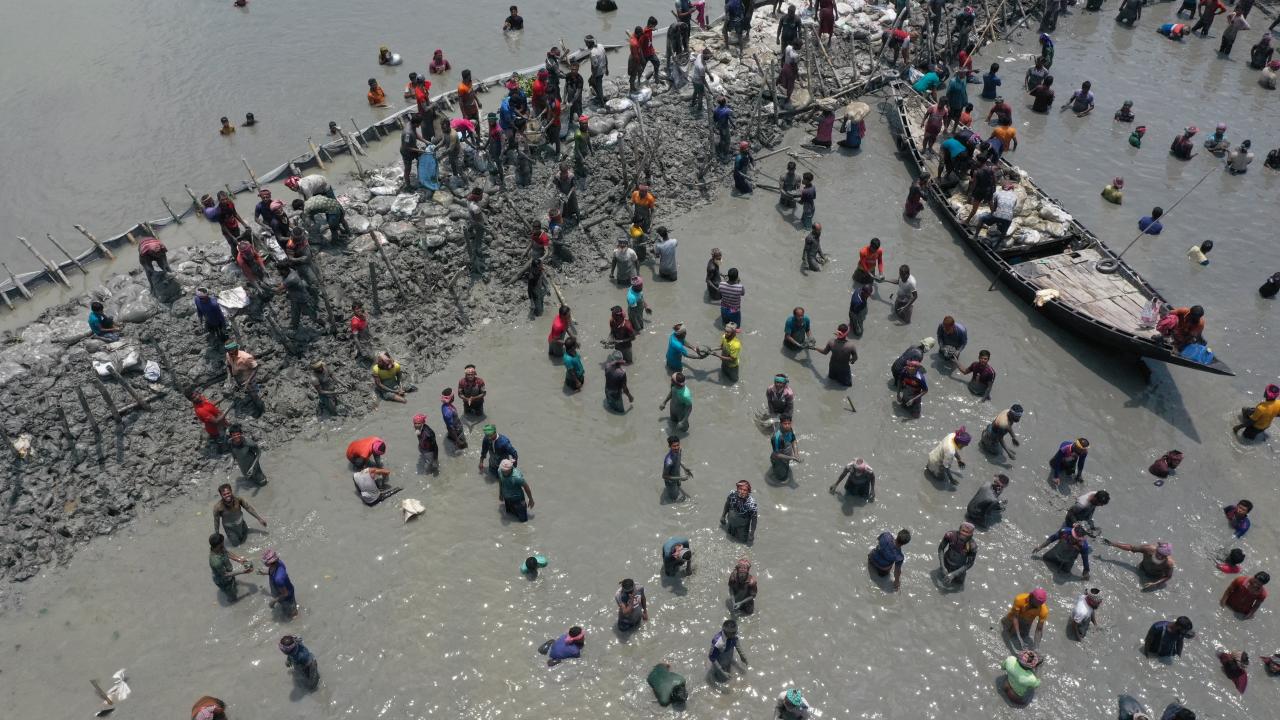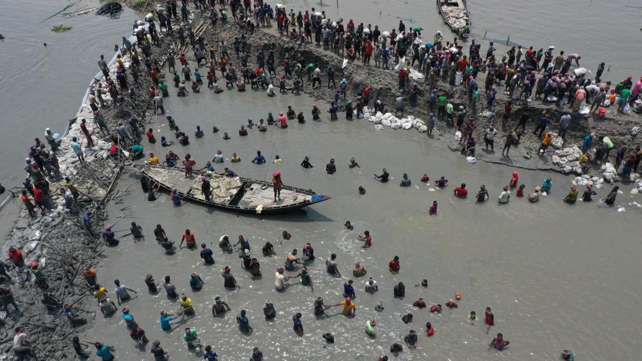 Bangladeş'in Khulna kentinde yükselen sular ve gelgitlerden dolayı kıyı bölgelerinin setleri çöktü. Sel ve tuzlu suyun bölgeye girmesi ekinlere, balıklara ve geçim kaynaklarına zarar verdi. Sahile yakın ikamet eden vatandaşlar kıyı bölgesinde hasar gören yerleri onarmak için çalışıyor.