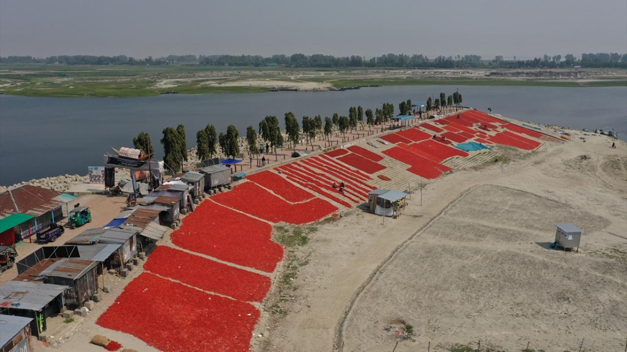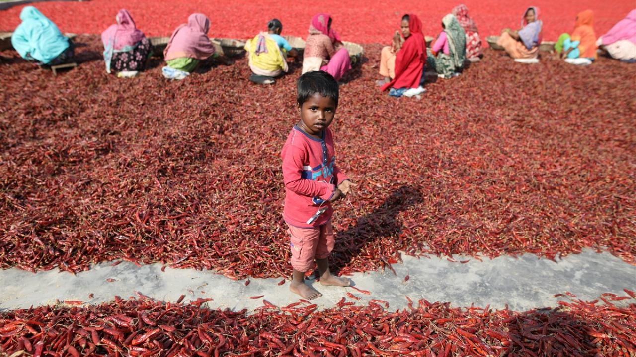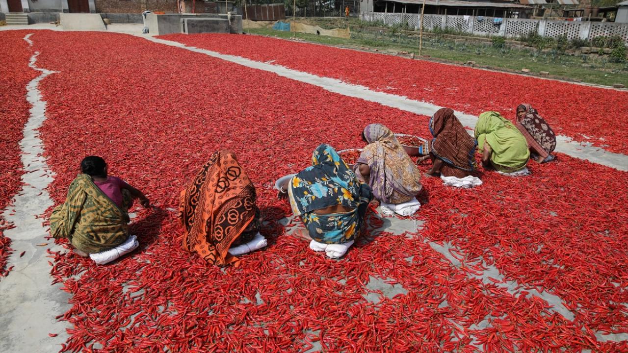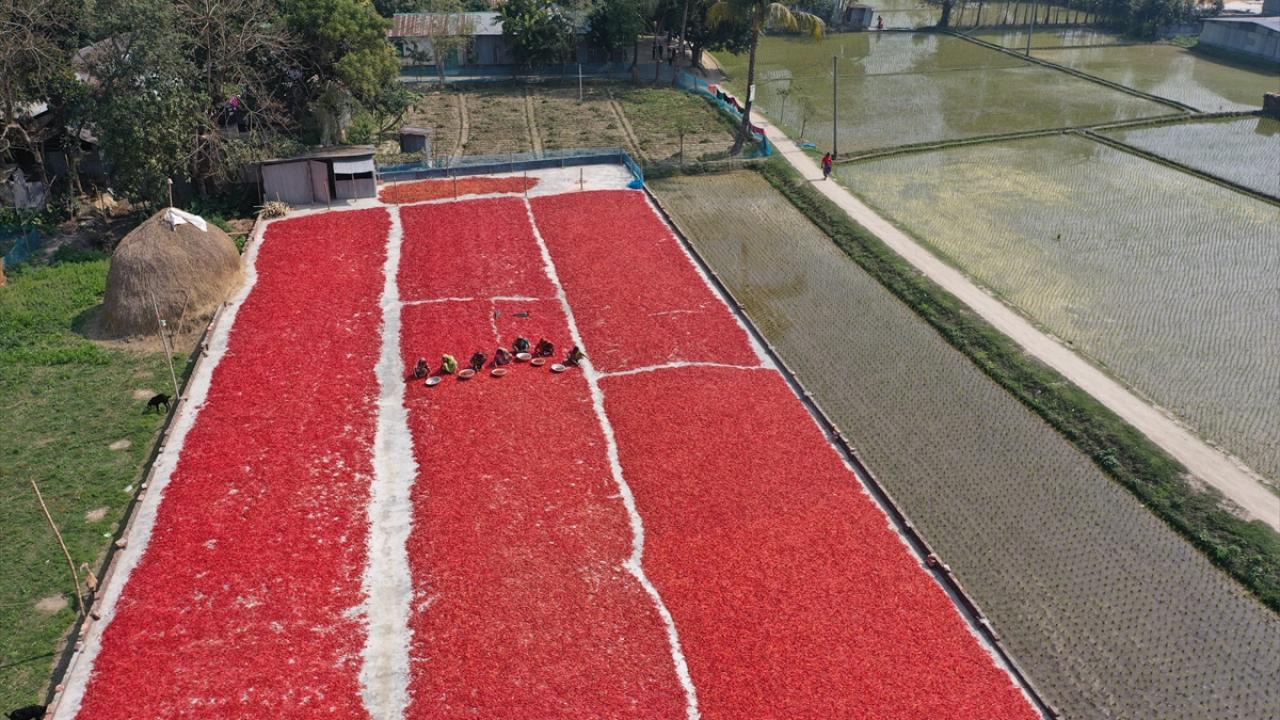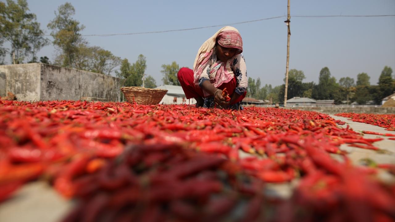 Bangladeş'te biber kurutma mesaisi