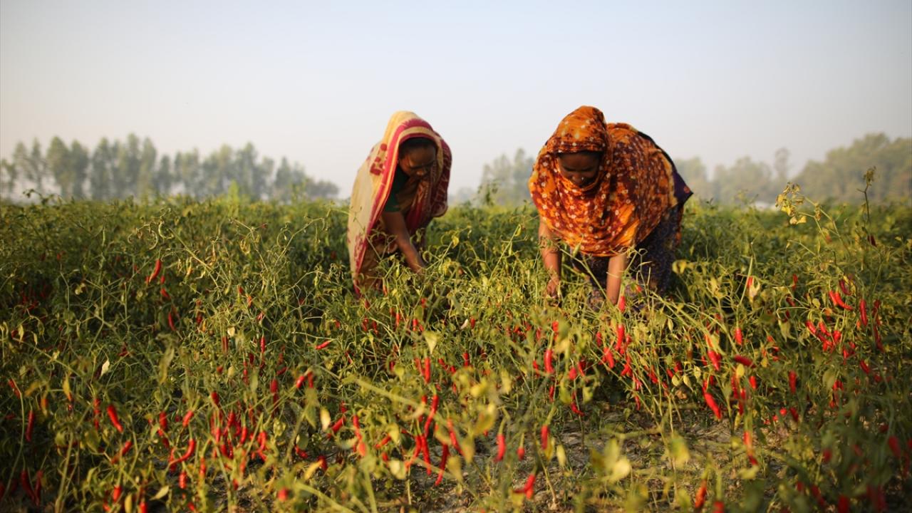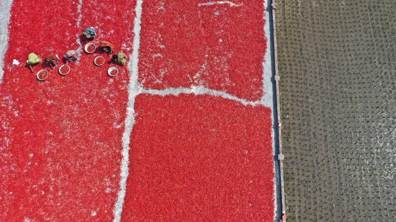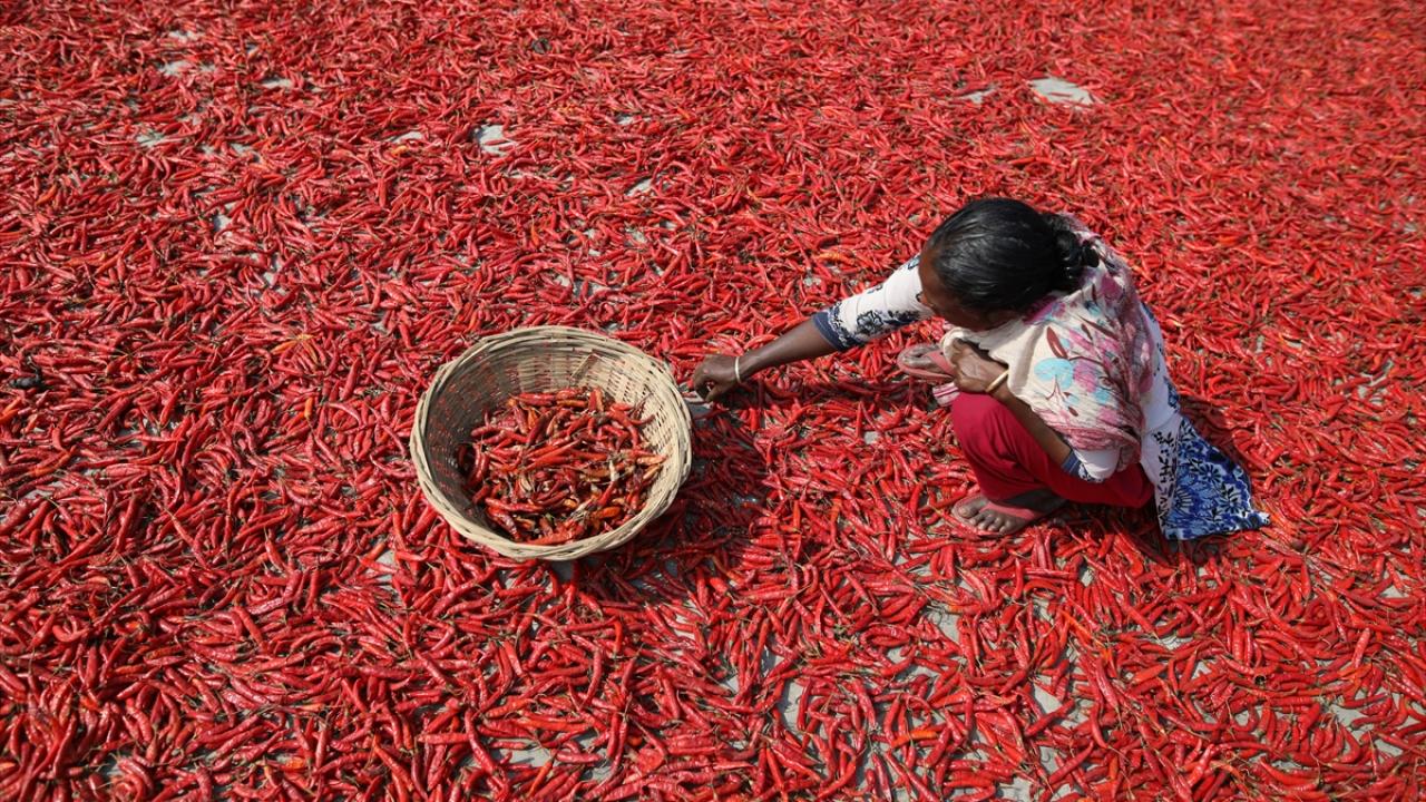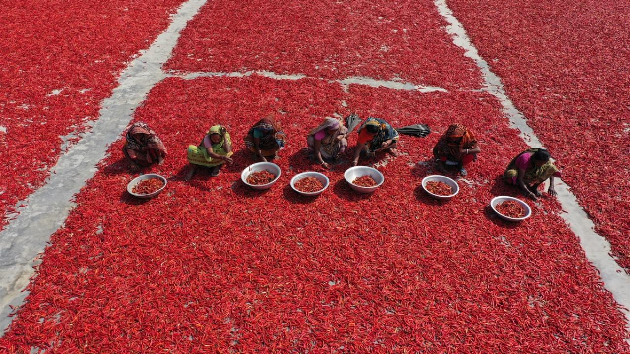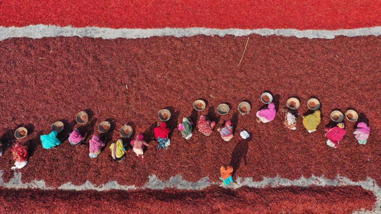 Bangladeş'te biber kurutma mesaisi