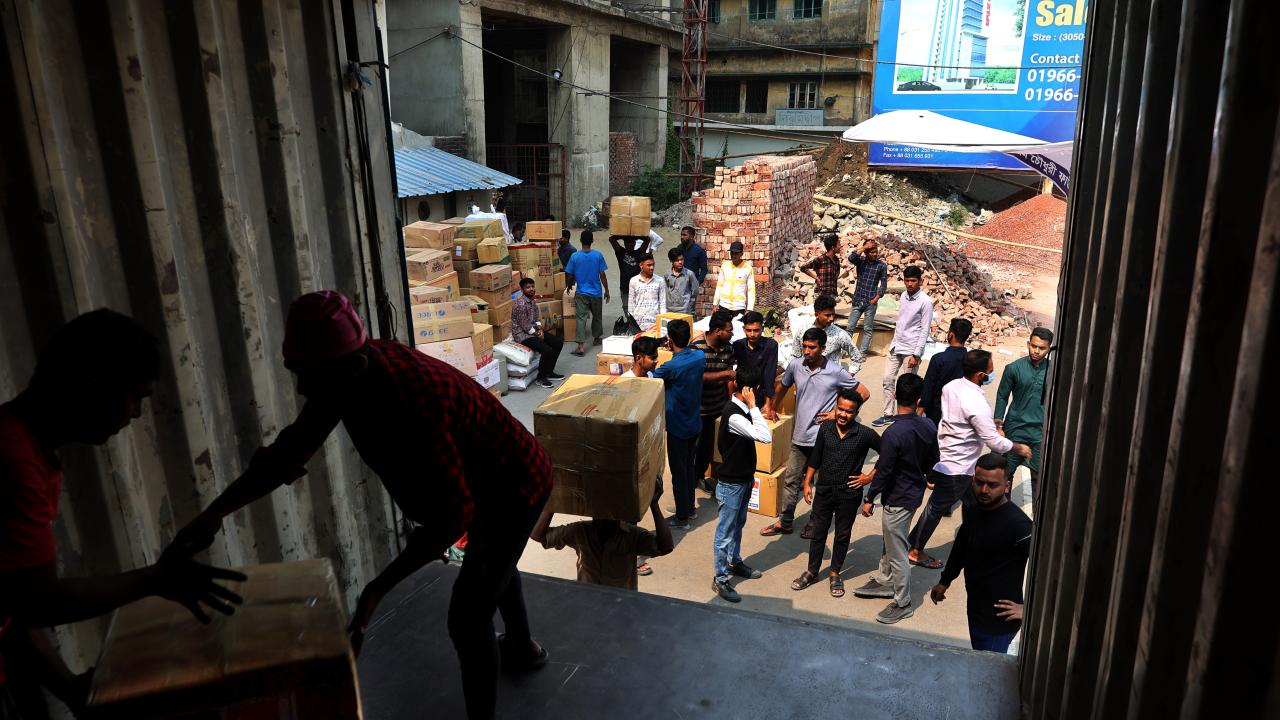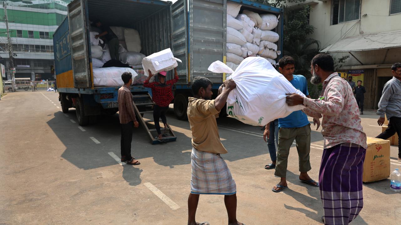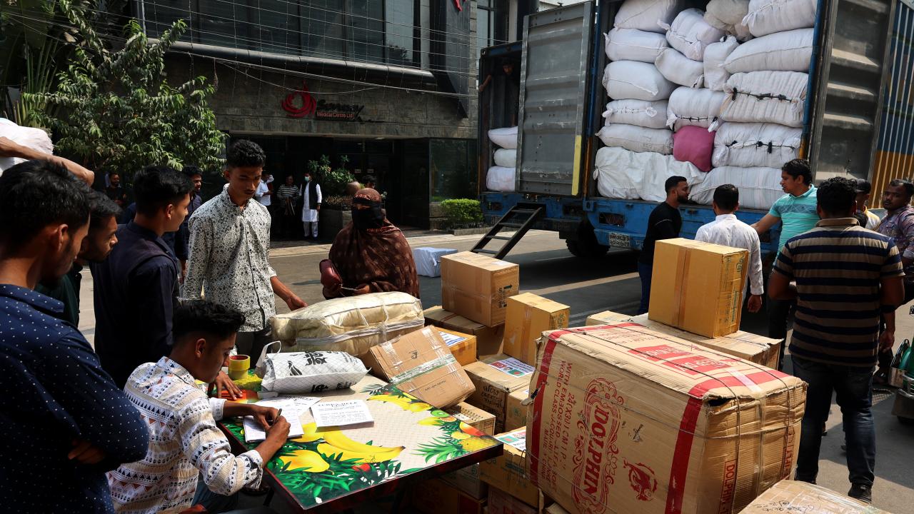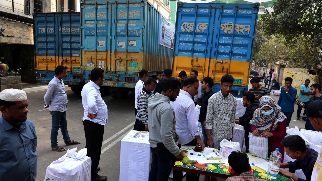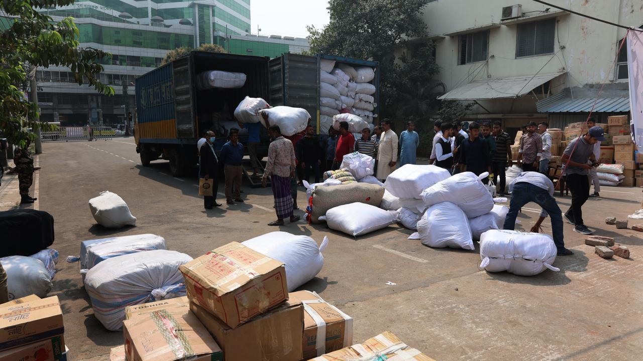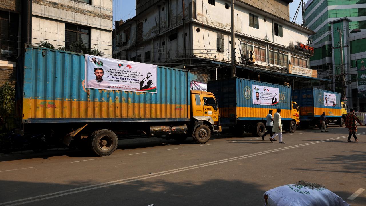 Bangladeş'in Çitagong kentinde, "asrın felaketi" olarak nitelendirilen Kahramanmaraş merkezli depremlerden etkilenen afetzedeler için insani yardım toplandı. Yardım gönüllüleri toplanan yardımları kamyonlara yükledi.