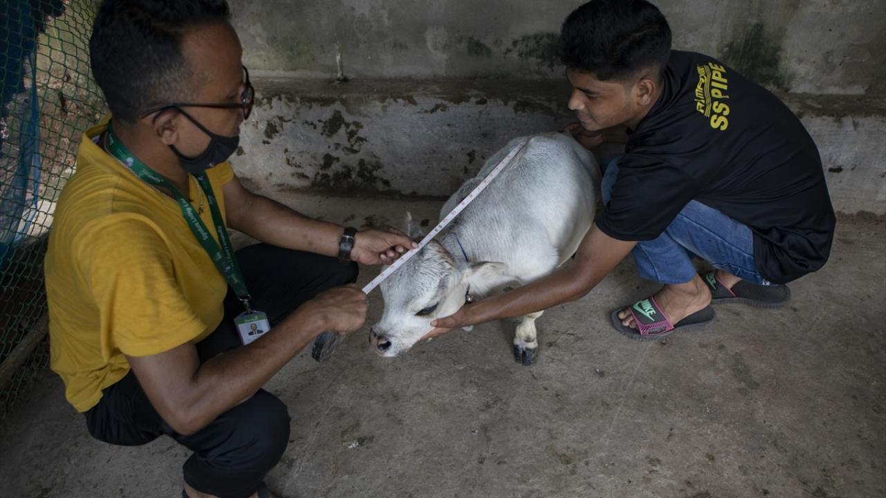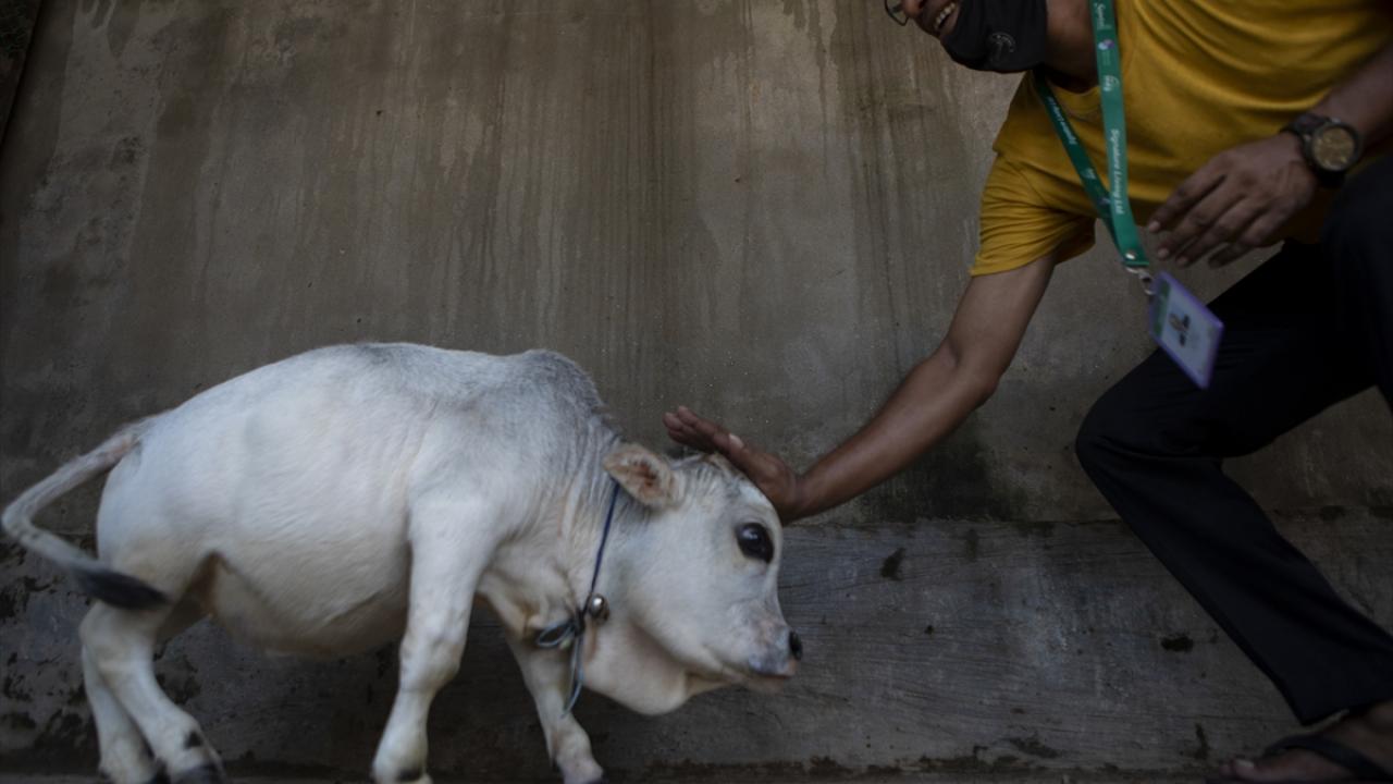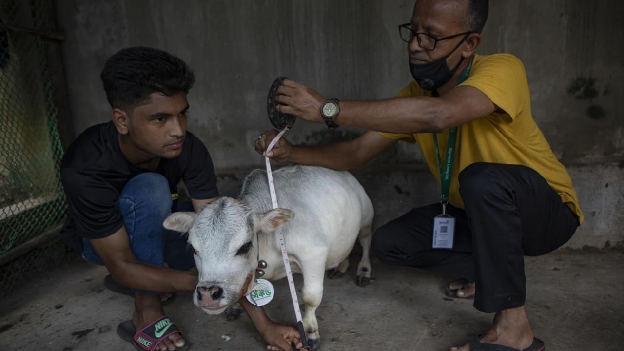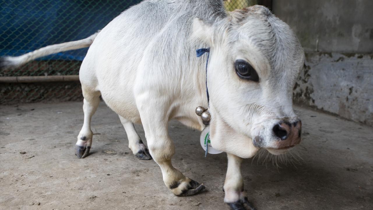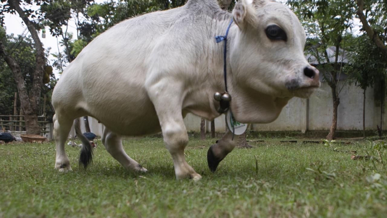 Bangladeş'in başkenti Dakka'da geçimini hayvancılıkla sağlayan bir ailenin sahibi olduğu 23 aylık Rani isimli cüce inek görenlerin ilgisini çekiyor.