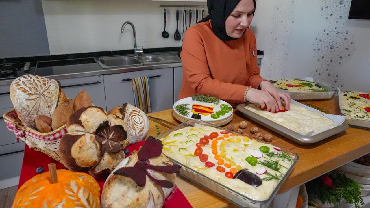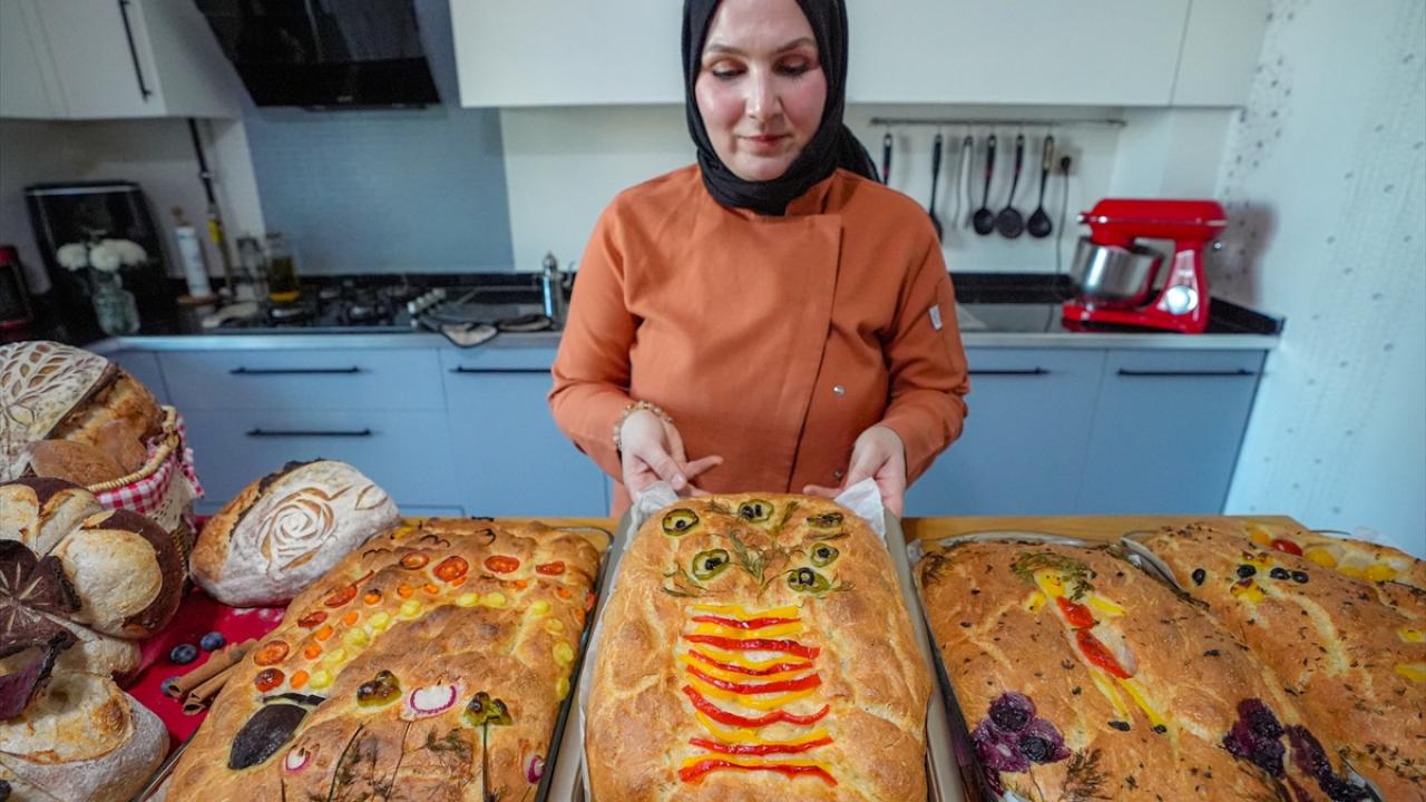 Anadolu`nun yanı sıra Fransa, Almanya, İtalya gibi birçok ülkeye ait ekmek tariflerini uygulayan Aydın`ın ekşi maya ile hazırladığı hamuru sebze, meyve ve otlarla süsleyerek yaptığı besin değeri yüksek ekmekler hem damağa hem de göze hitap ediyor.