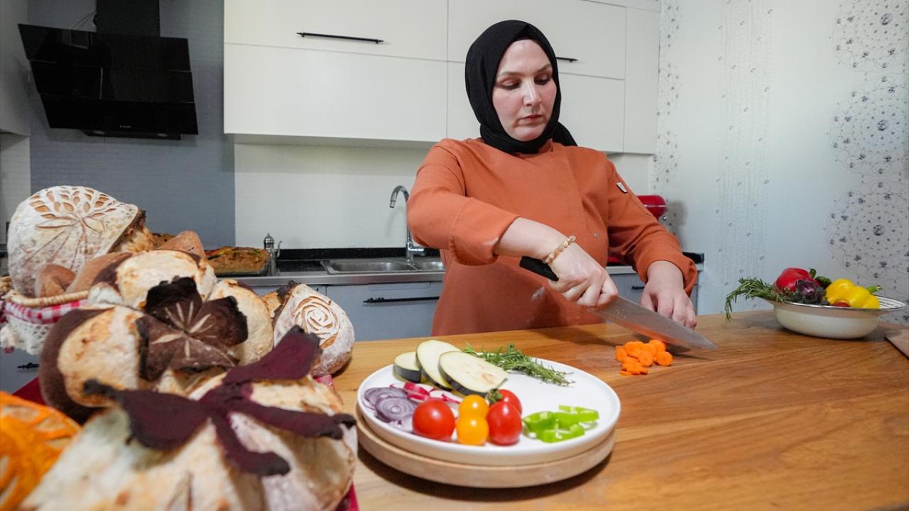 Diyarbakır'da bankacılığı bırakarak aldığı eğitimlerle şef olarak görev yapmaya başlayan Merve Aydın, ekşi maya ile hazırladığı hamuru sebze, meyve ve otlarla süsleyerek adeta tablo gibi besin değeri yüksek ekmekler yapıyor.
