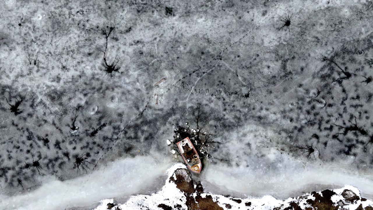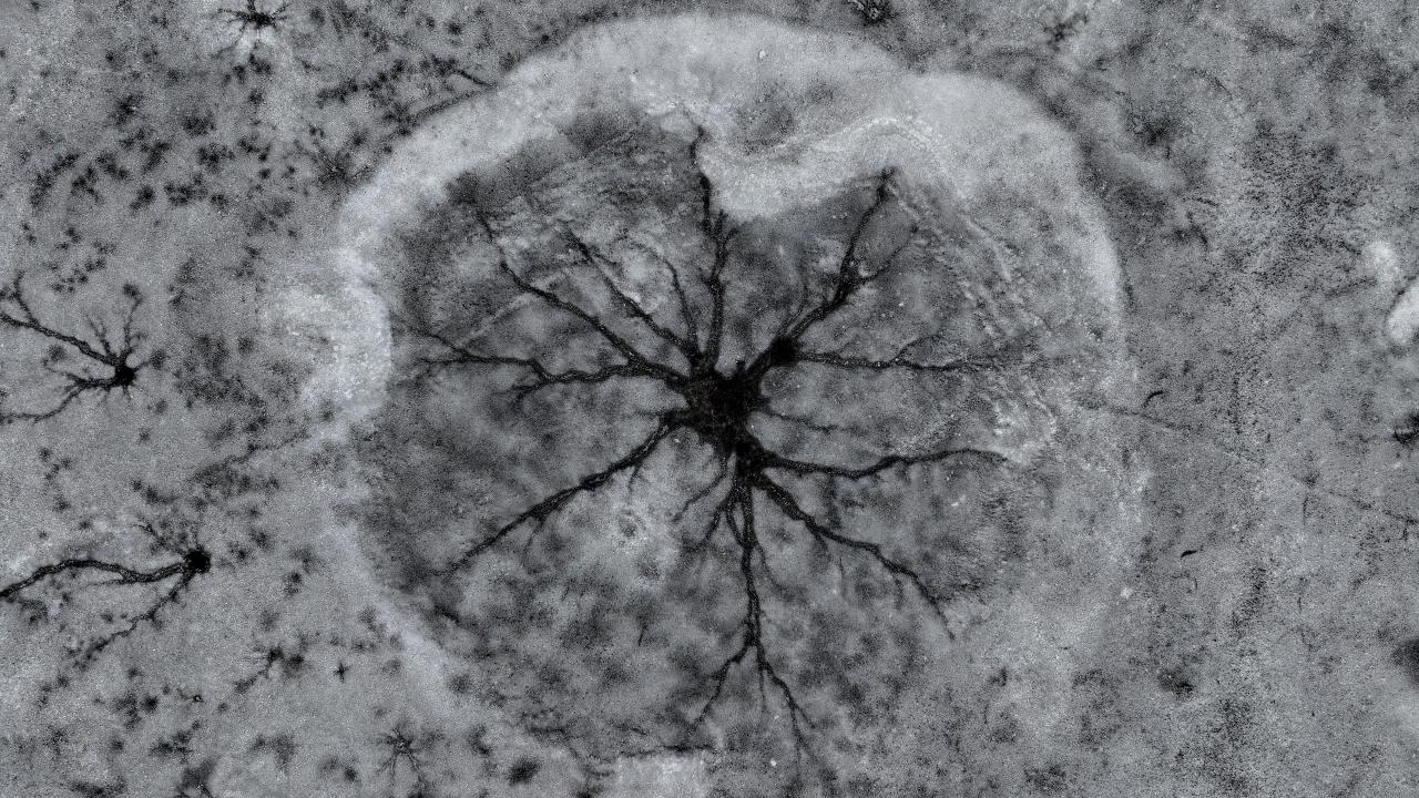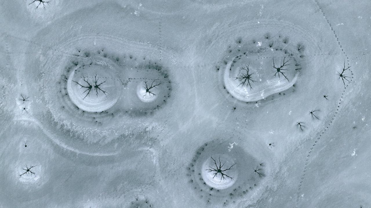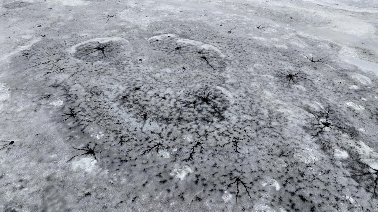 Beyaz ve açık mavi tonların hakim olduğu buz tabakası, havadan bakıldığında insan gözünün iris ve göz bebeğini çağrıştıran doğal desenler oluşturdu.